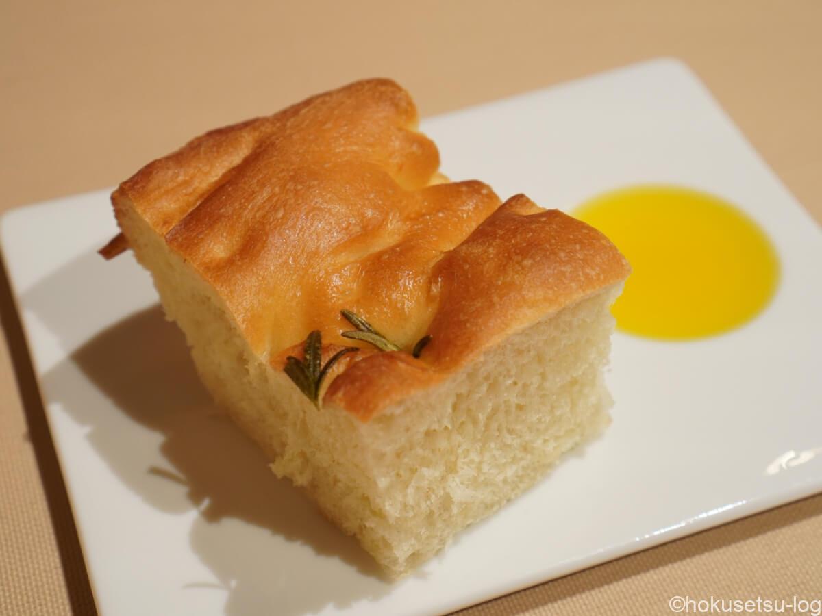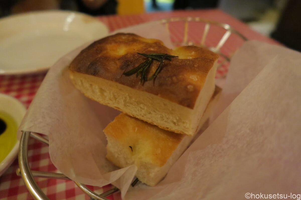 最初にパンが運ばれてきました。このフォカッチャはお代わり自由!