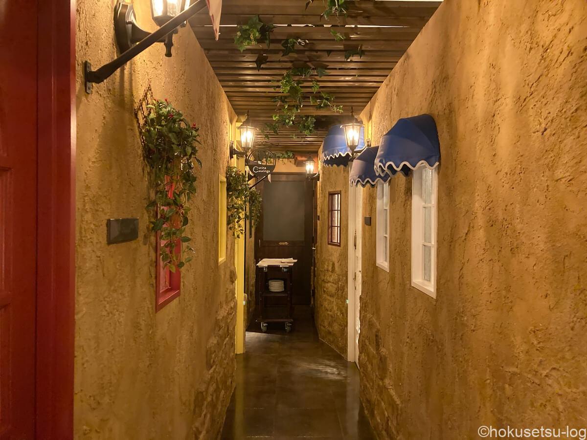 そのまま奥の廊下に入ると、個室の入口が並んでいます。