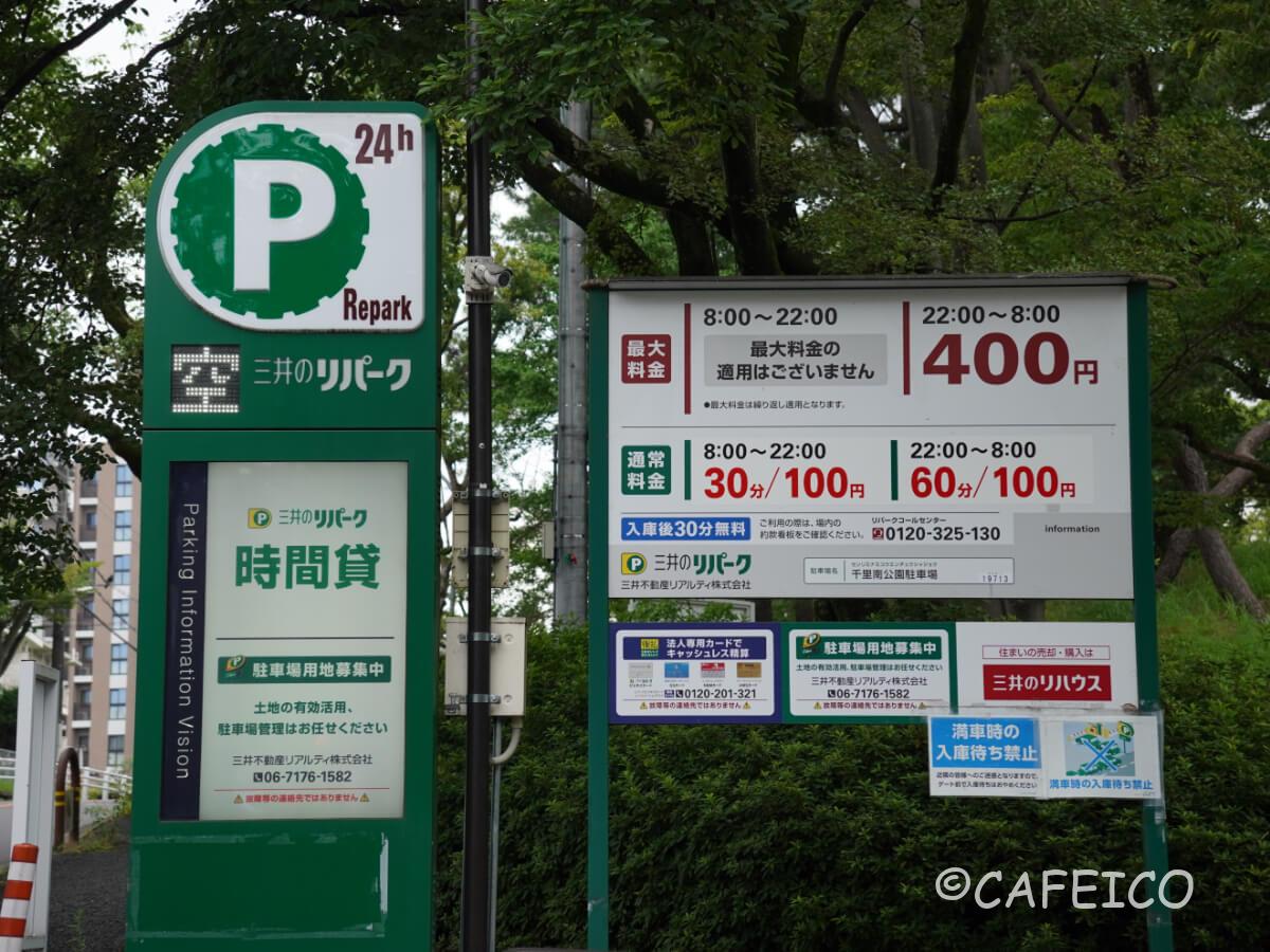 駐車場は「三井のリパーク 千里南公園駐車場」がおすすめです。一番近いです。