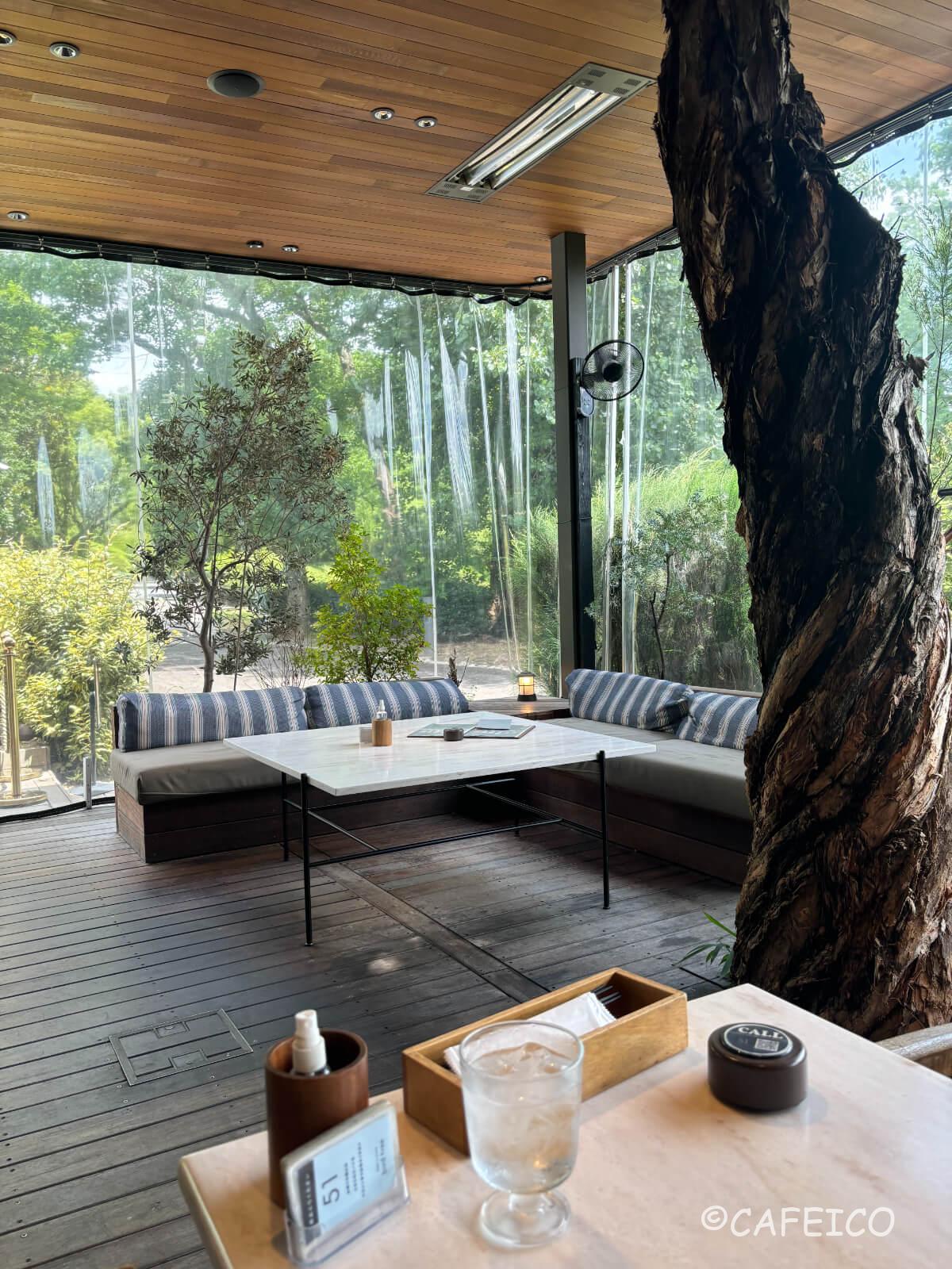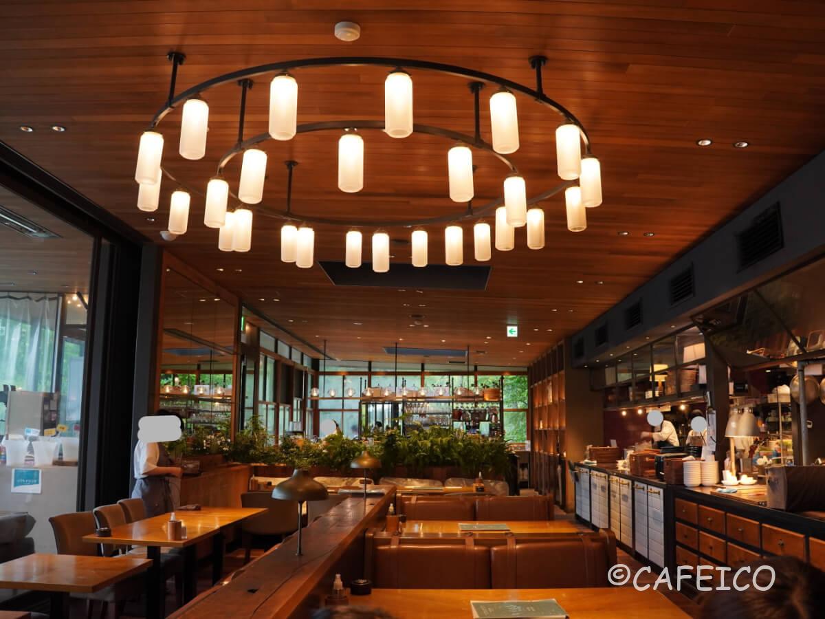 リゾート感あふれる店内。公園側を完全開放できるパノラマビューの造り