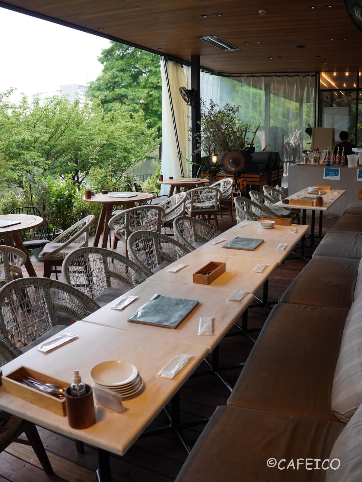 テラス席の天井には電熱式ヒーターが備えられていて、冬場でも開放できるそうです。