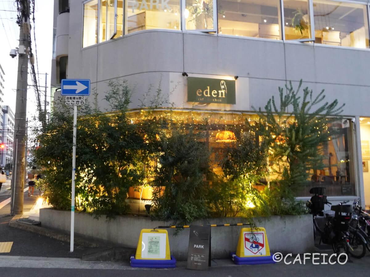 こちらが「カフェエデン」さん。夜のお店がとても綺麗です。