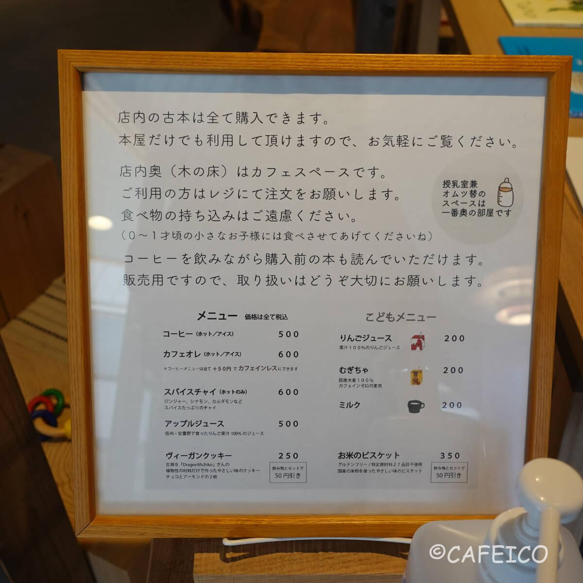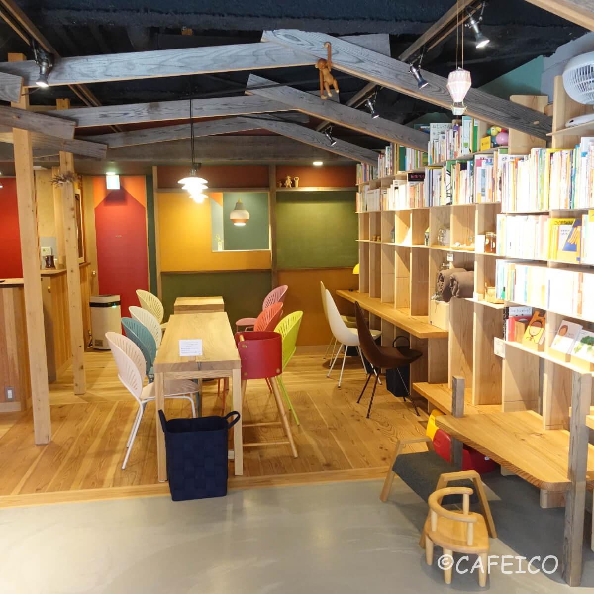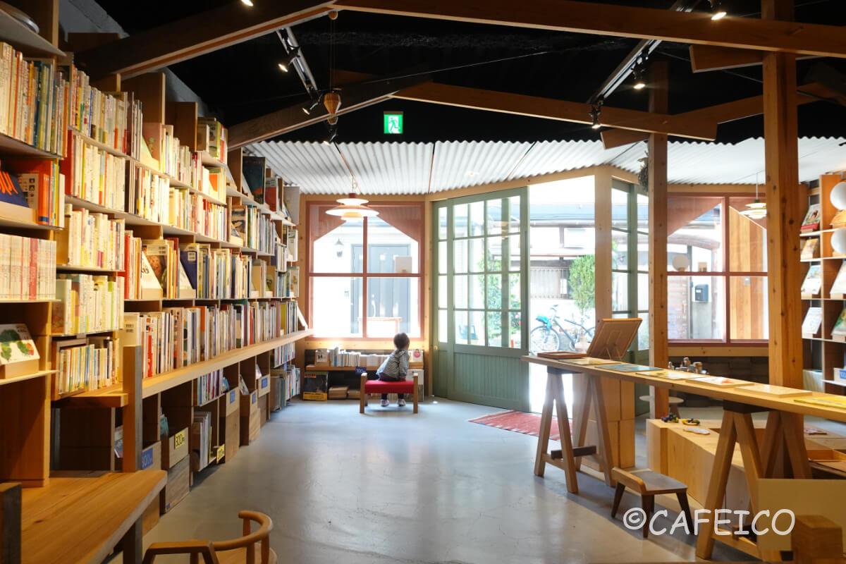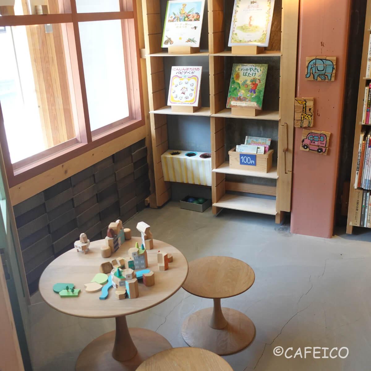 絵本はすべて販売用ですが、手に取って読んだりカフェスペースに持ち込むこともできます。