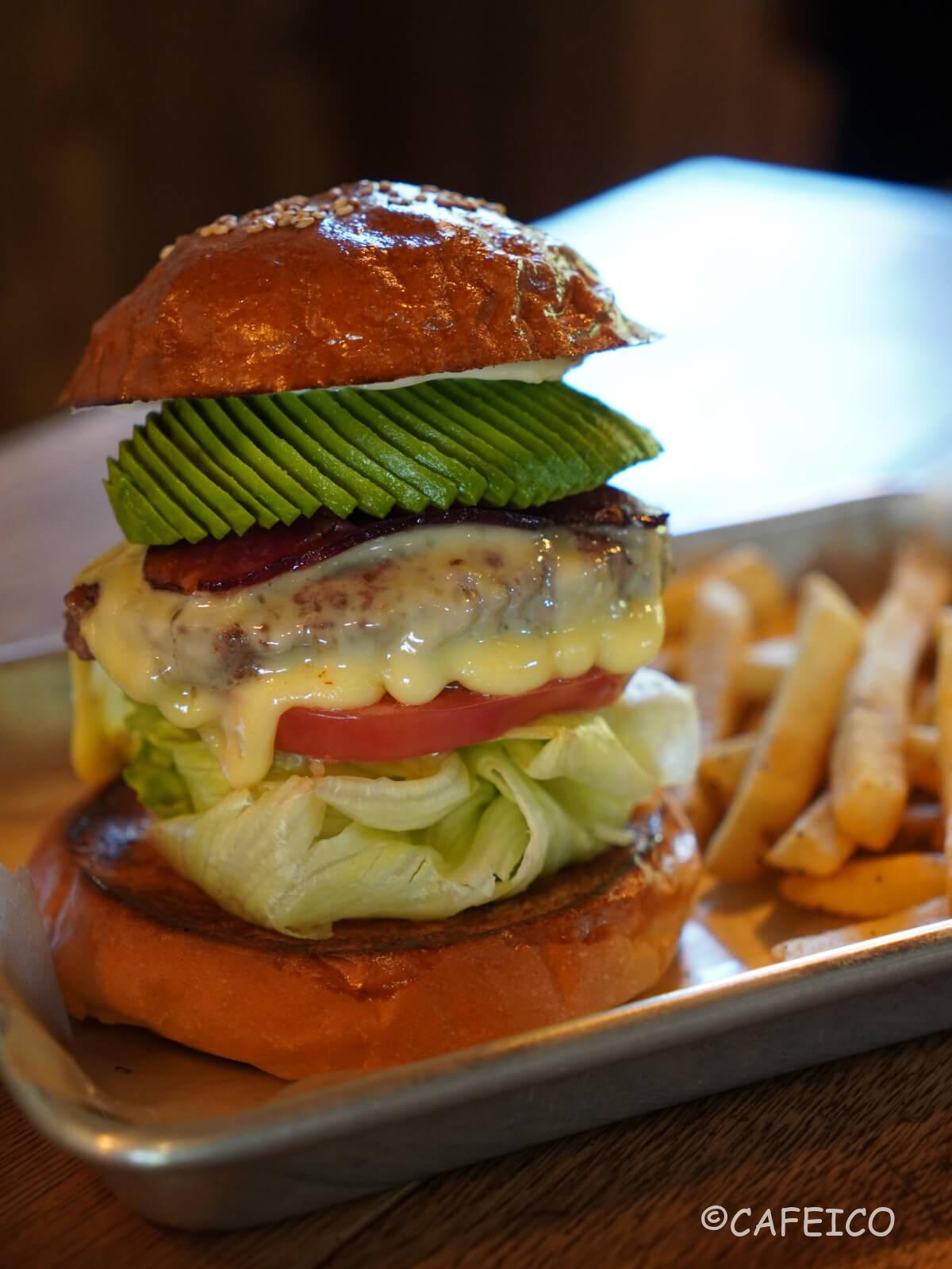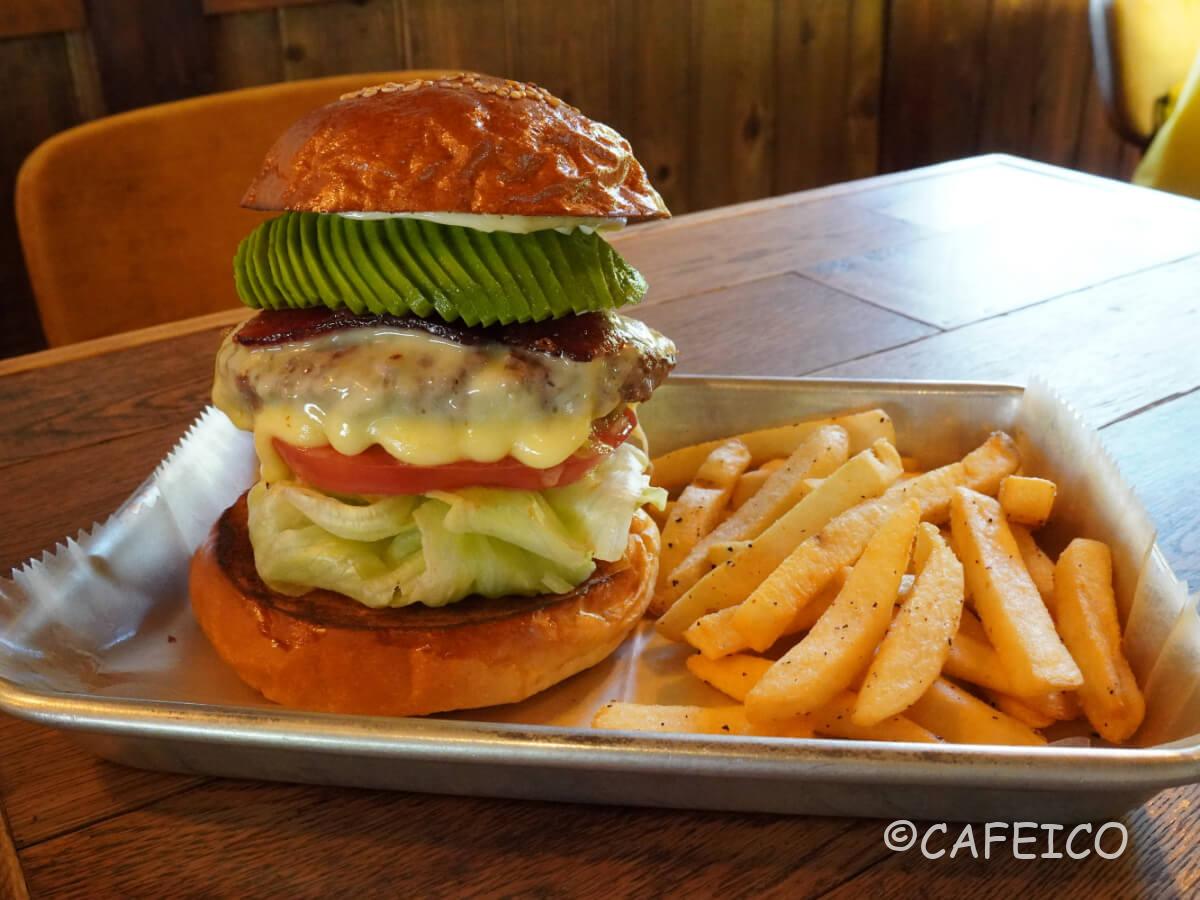パティは100%ビーフで肉々しい。バンズも天然酵母を使った自家製で外はカリカリで中はふわふわ。アボカドたっぷりでボリュームがすごい。