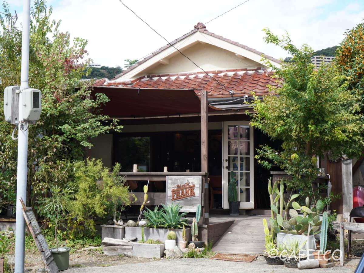場所は箕面・如意谷。住宅街の古民家のお店なので、よく見ないと通り過ぎてしまいます。実はここには、古民家を改装した飲食店が2つ並んでいます。今回訪問した「FRANK -Ride and Eat-」と「CAZI cafe」というお店です。