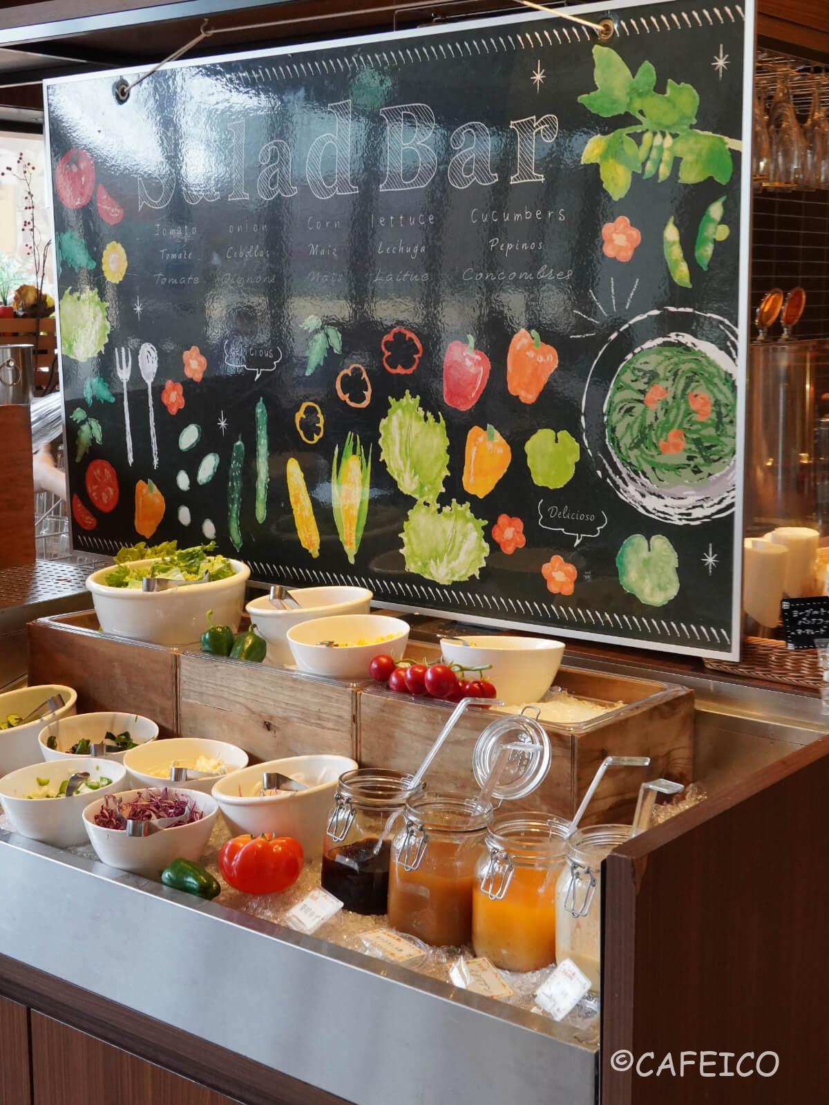 全てのランチメニューに「パン食べ放題&サラダバー」を付けることができます。