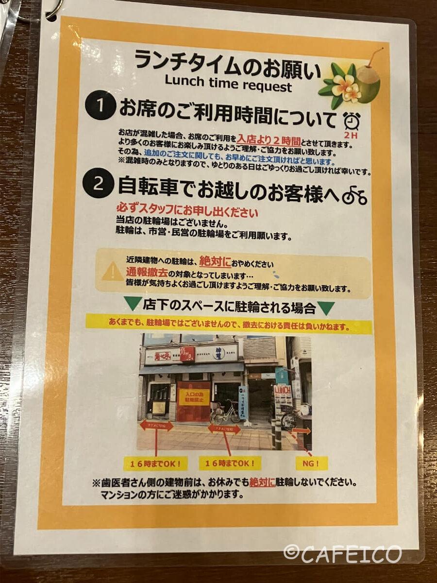 ランチタイムのお店からのお願いがありました。よろしくお願いします。