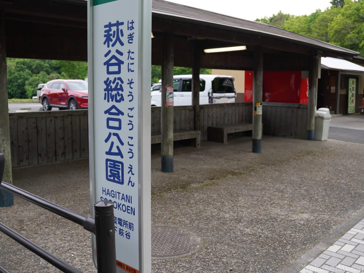 JR「富田」駅よりバス1番のりば「萩谷・萩谷総合公園」行き「萩谷総合公園」下車
