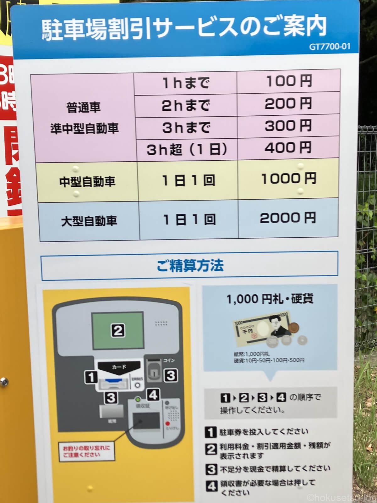 駐車場代は無料ではないものの、1日最大400円と安めの価格設定で助かります。