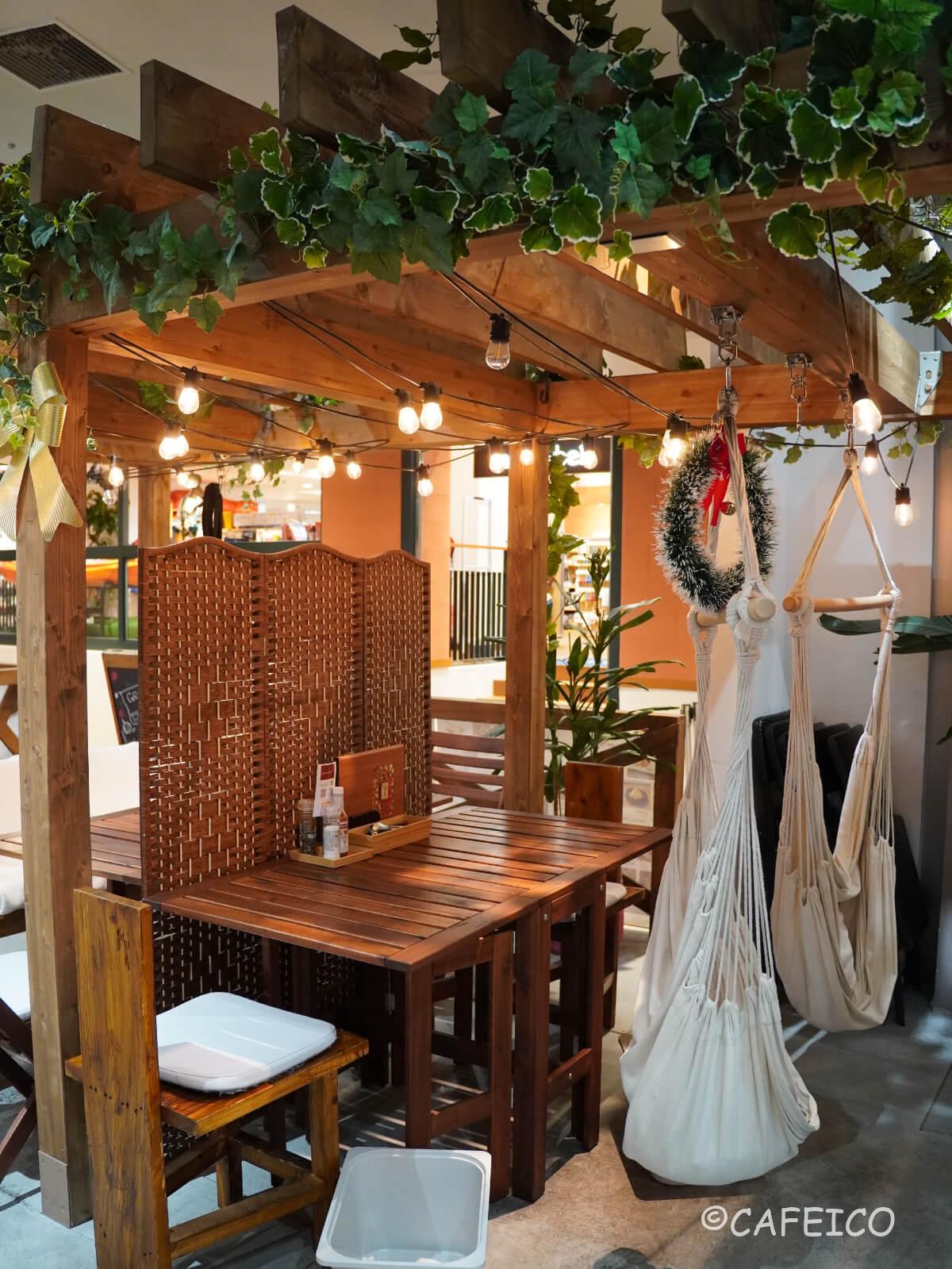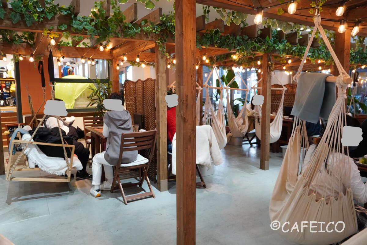 座席 :テーブル席、テラス席、ハンモック、ブランコ