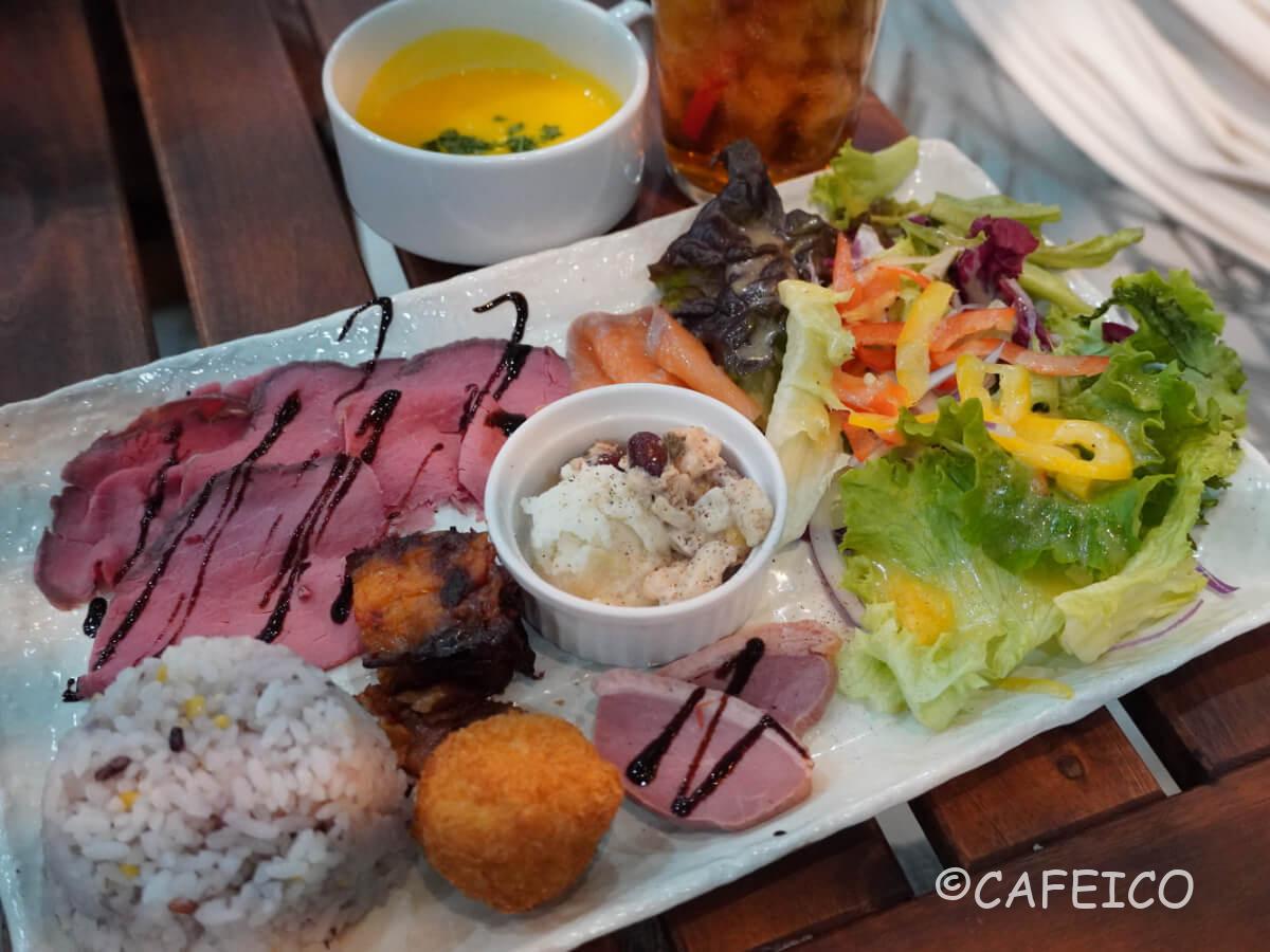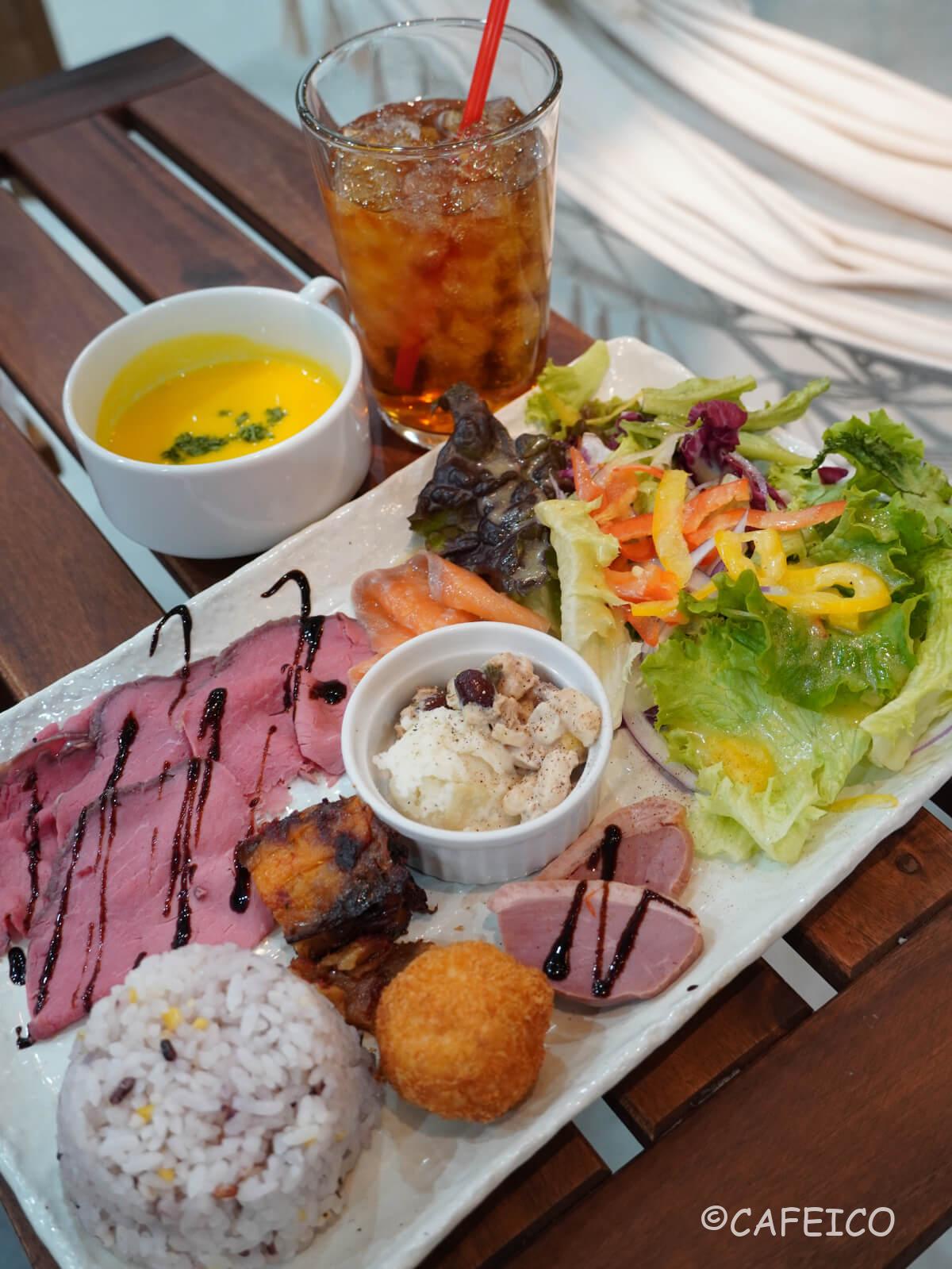 平日限定ランチメニュー大人気のベジタブルプレート。お肉とお野菜どちらもバランス良く摂れて健康的です。ドリンク付き。雑穀米とバケットを選べるので、その日の気分に合わせてチョイス!
