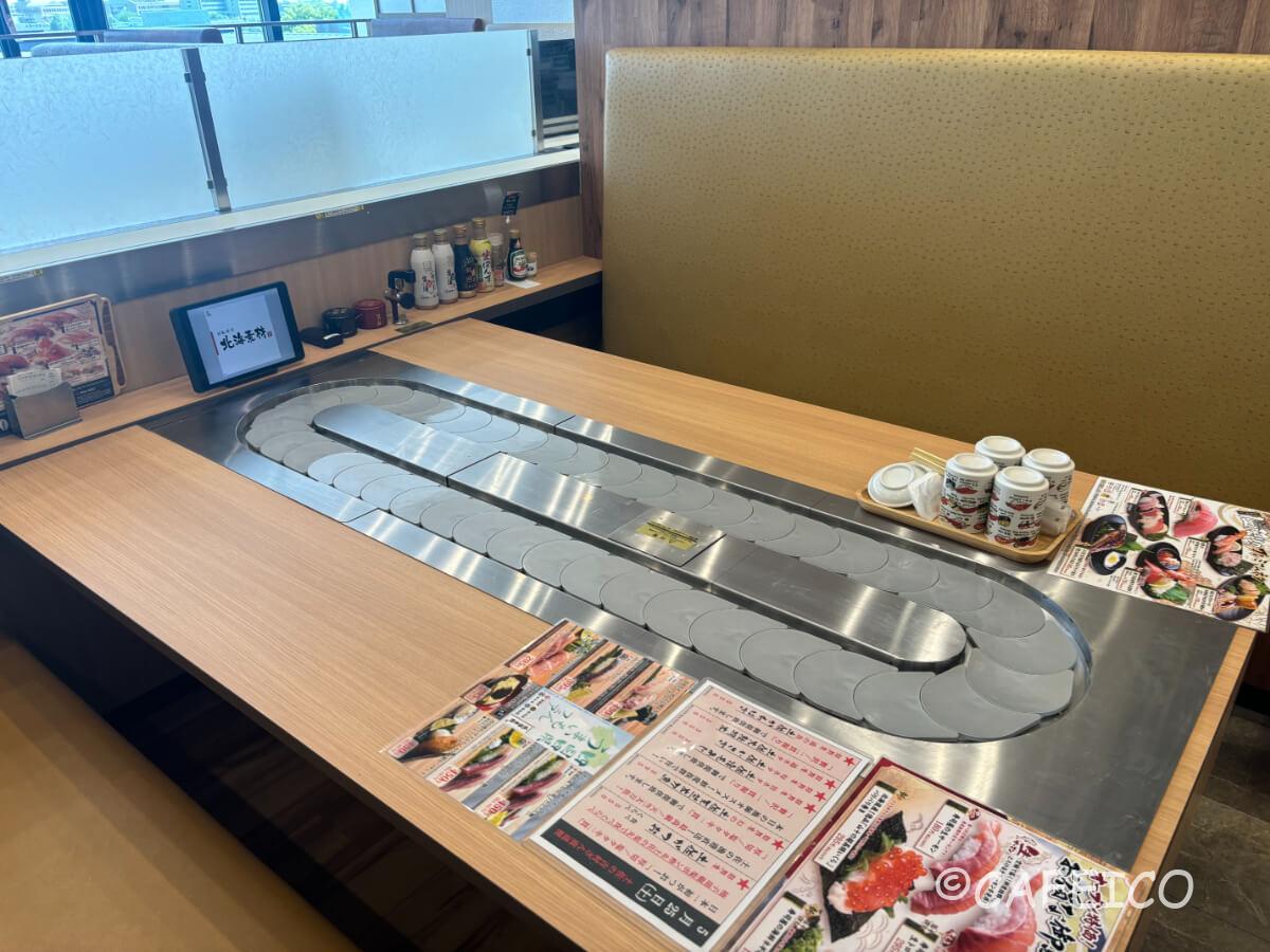 入ってびっくりするのは各テーブルに備え付けてある回転レーン!