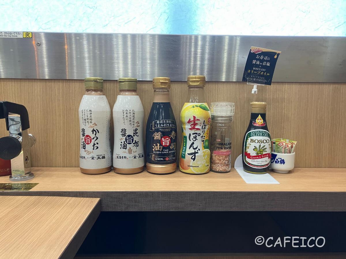 3種類の醤油にポン酢に岩塩、オリーブオイルまでありました!