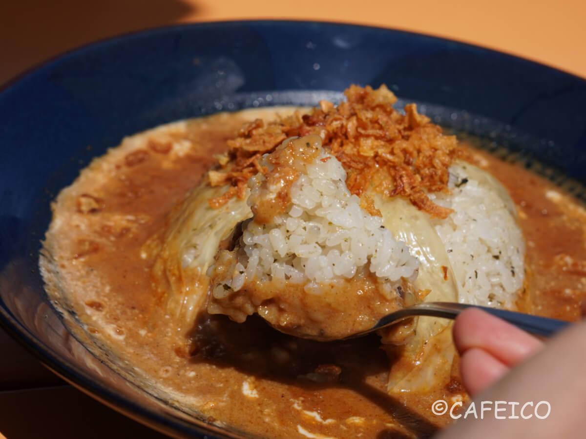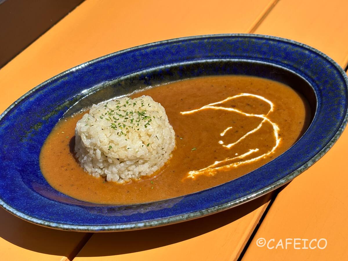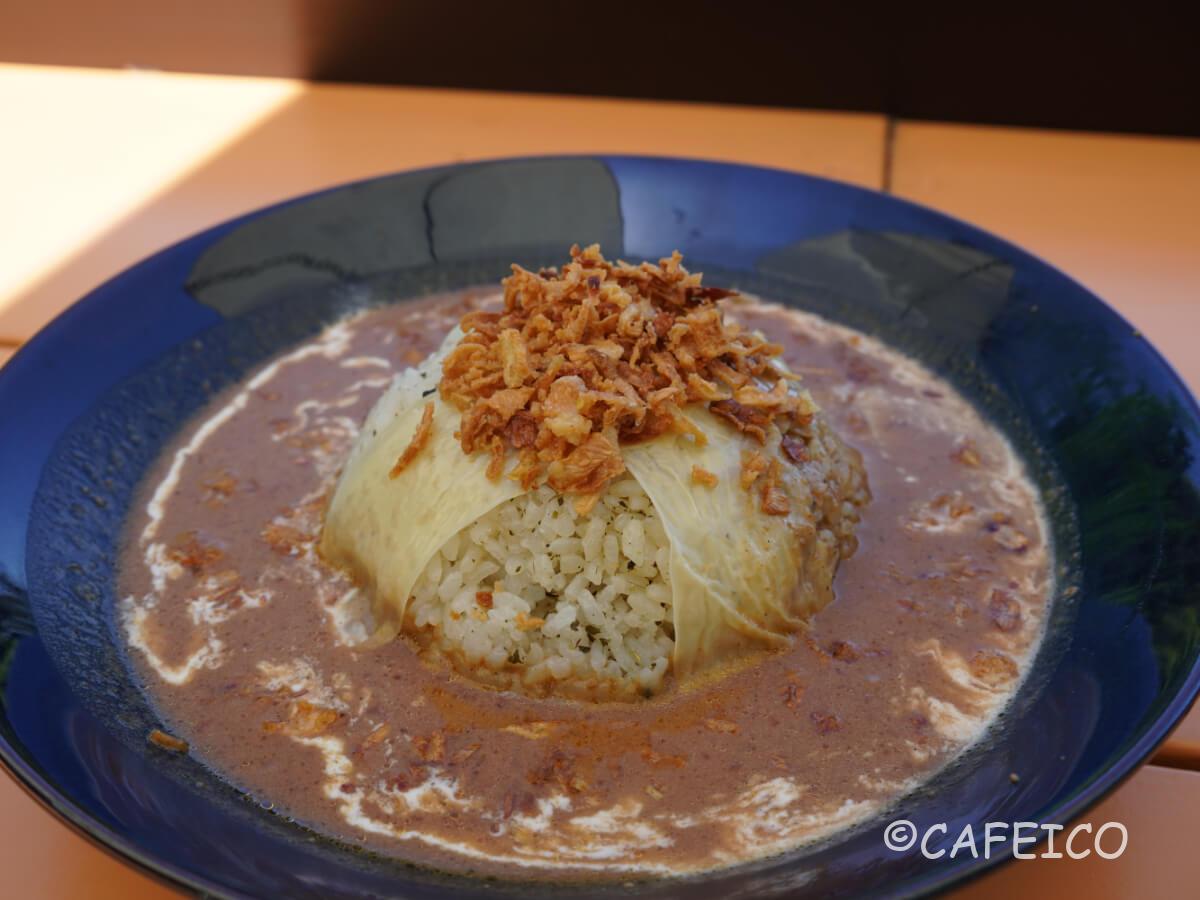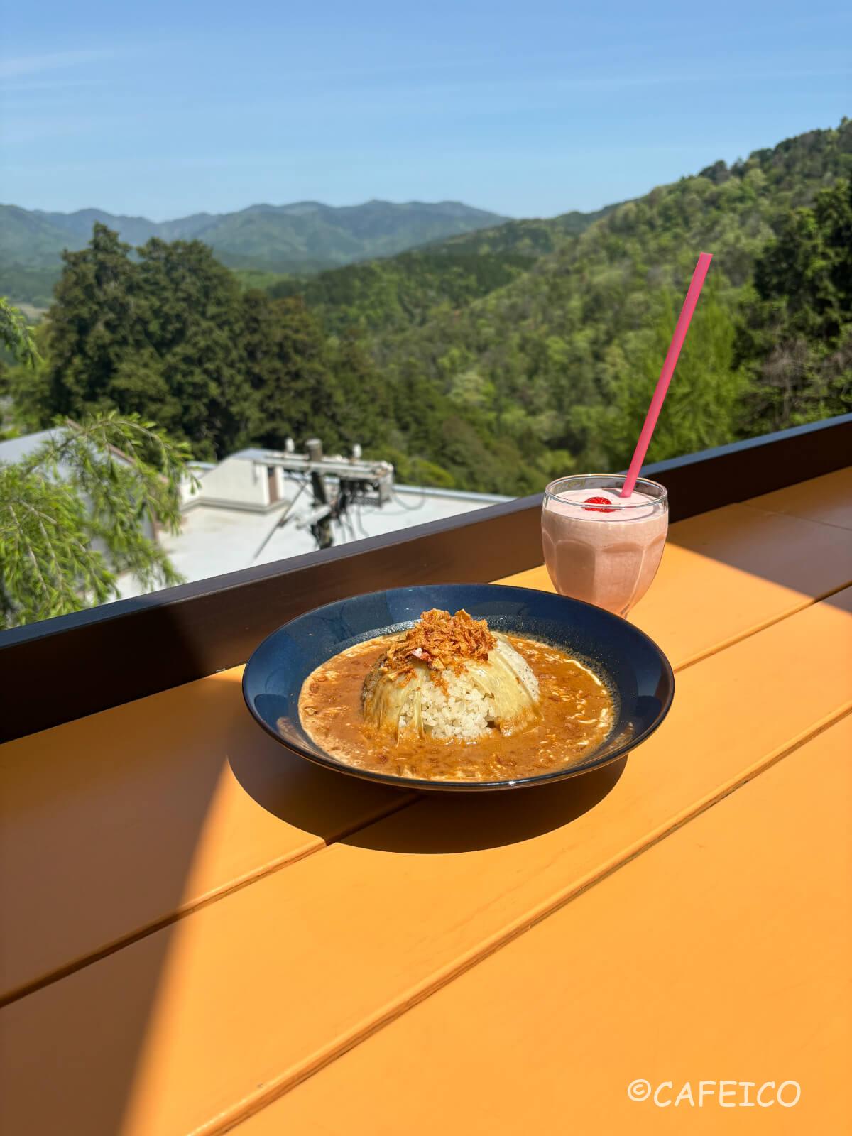 この景色を一望しながら、茶飯に鯖出汁と薬膳スパイスがブレンドされた名物「ほんたき薬膳カレー」。