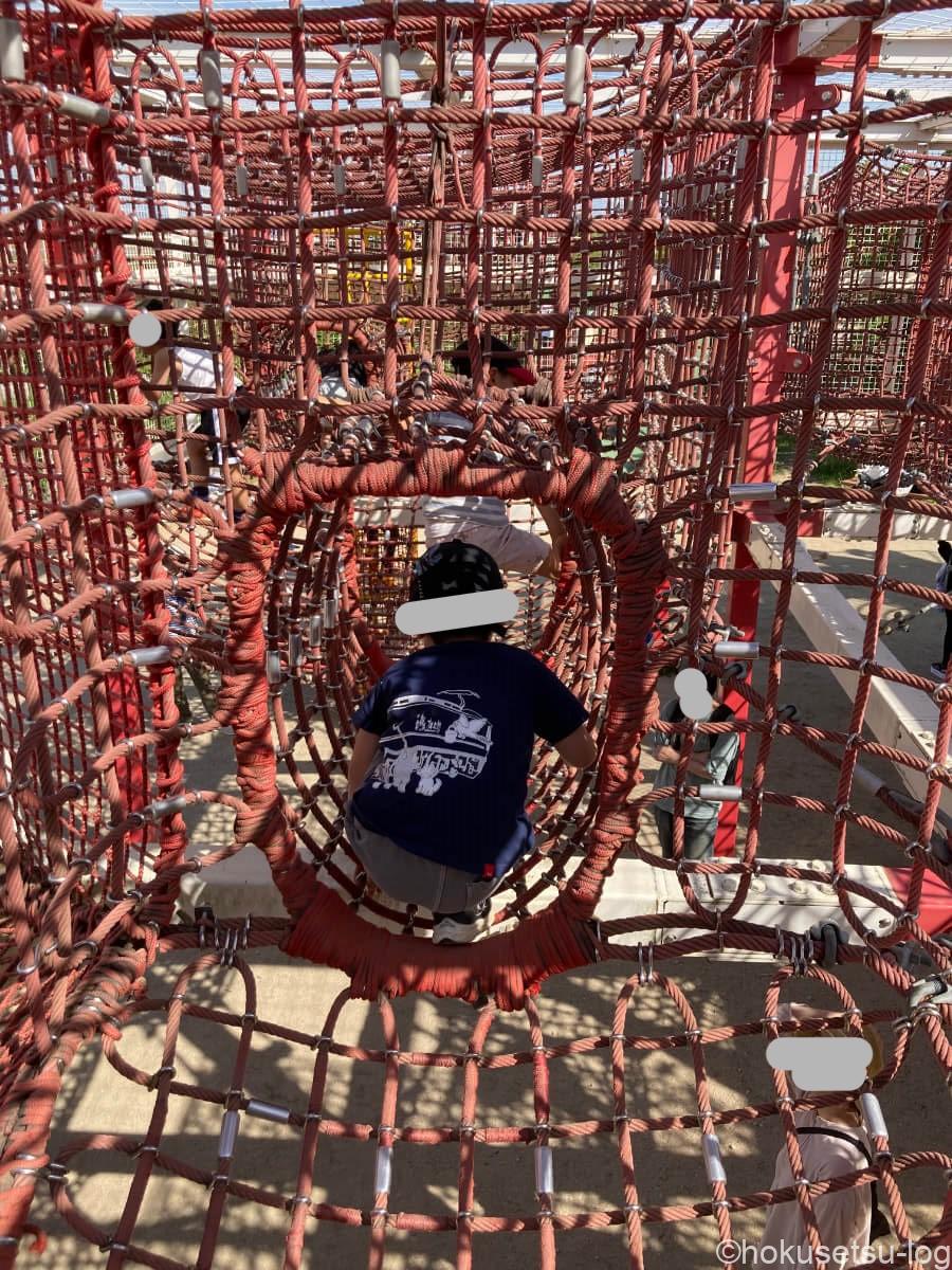 豪快に昇ったり、ジャングルジムの棒に当たらないよう寝た状態で上から滑ったり、楽しそう♪