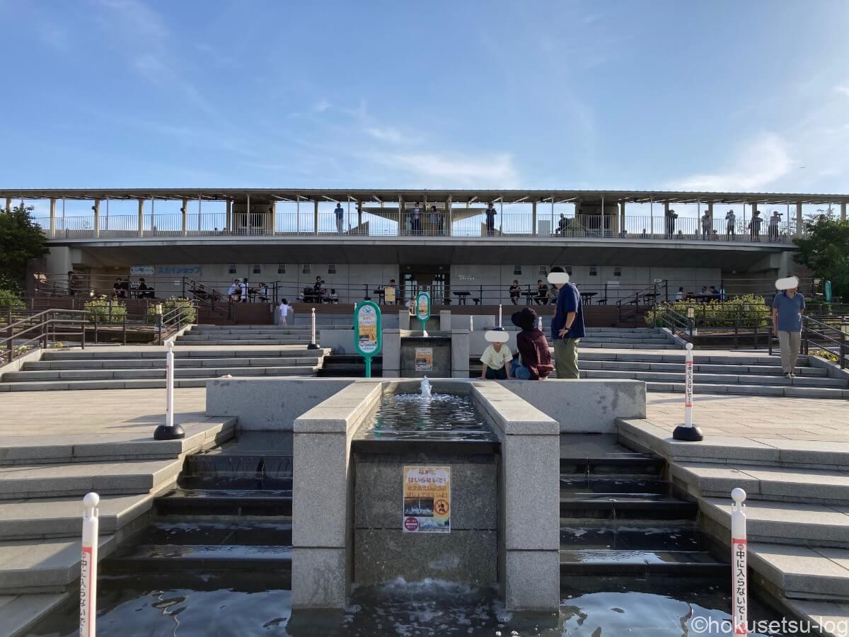 噴水は循環式で、ろ過機を通じて塩素消毒されていますが飲まないようにしましょう。