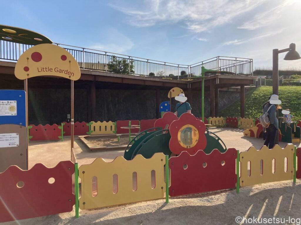 大型遊具のエリアとは別に、3歳までの幼児が遊べるエリアもあります。