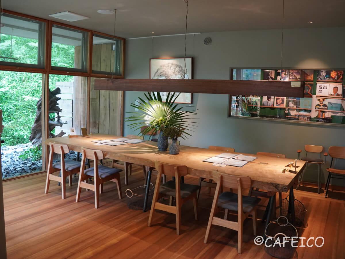 大きな窓と、そこから見える緑、上手工作所の家具の組み合わせが素敵!