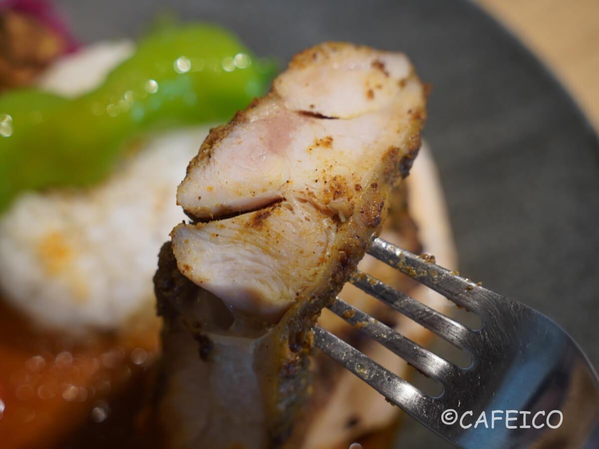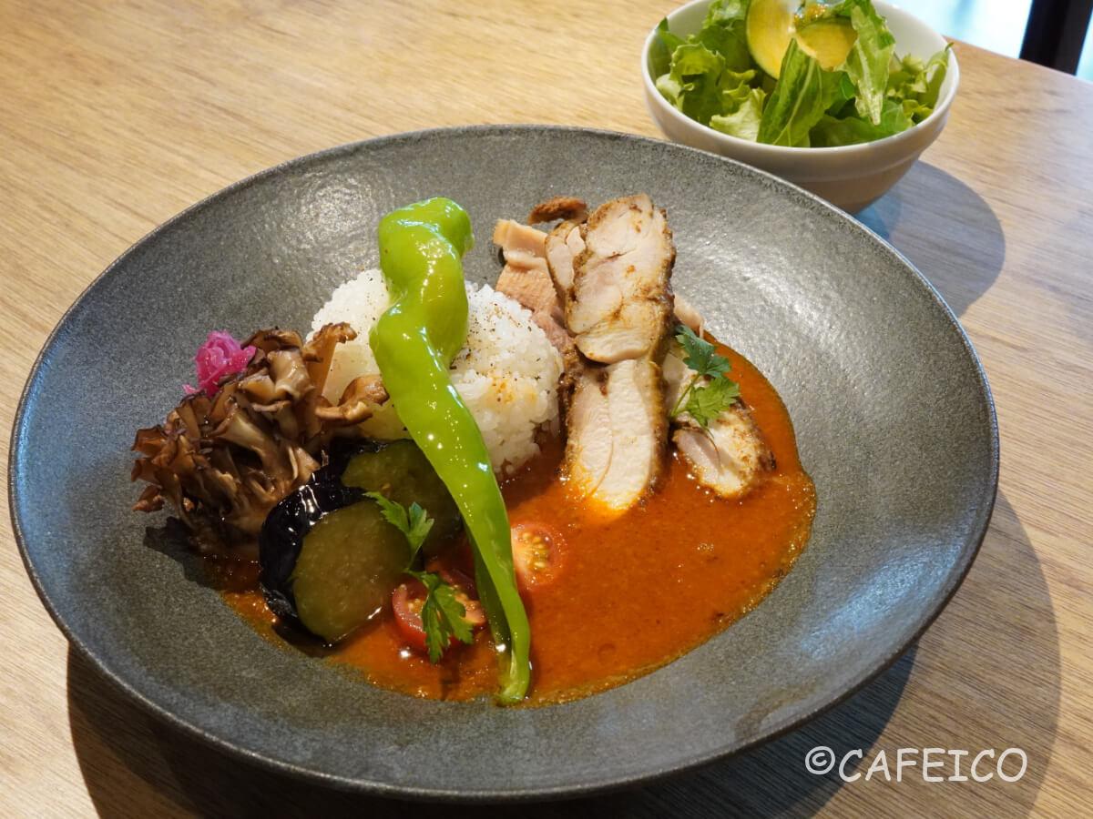 今回注は、全部入りの素揚げ野菜とポーク&チキンのカレーをいただきました。