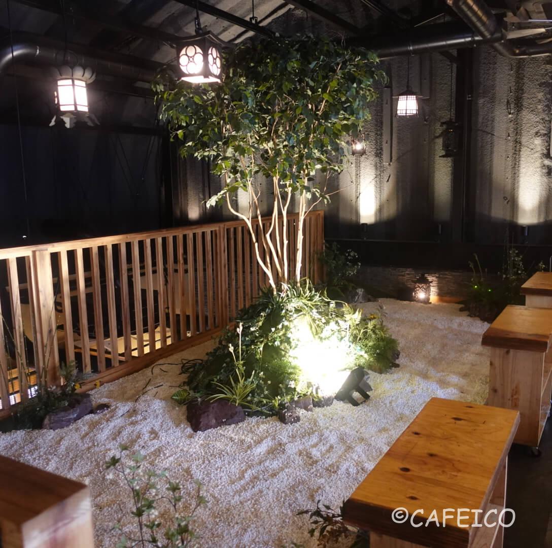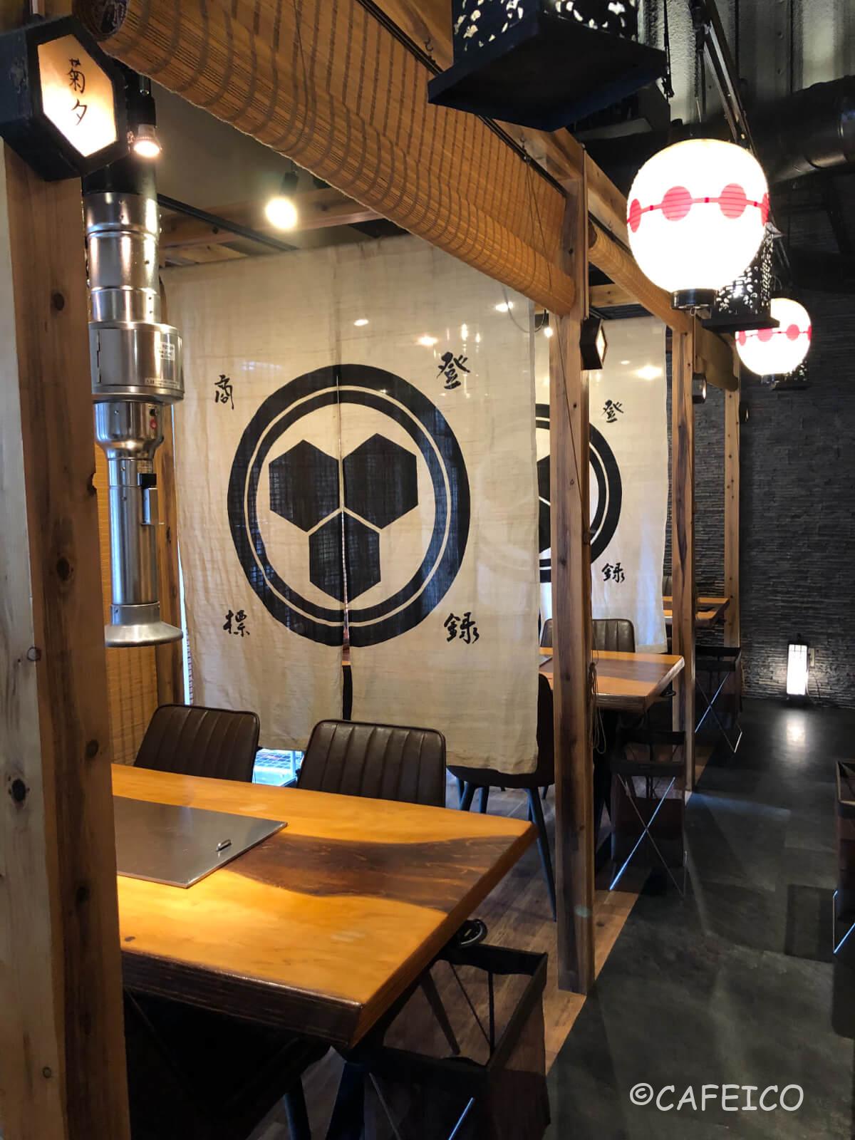 行灯やすだれの仕切りなど和の要素たっぷりの落ち着いた雰囲気。