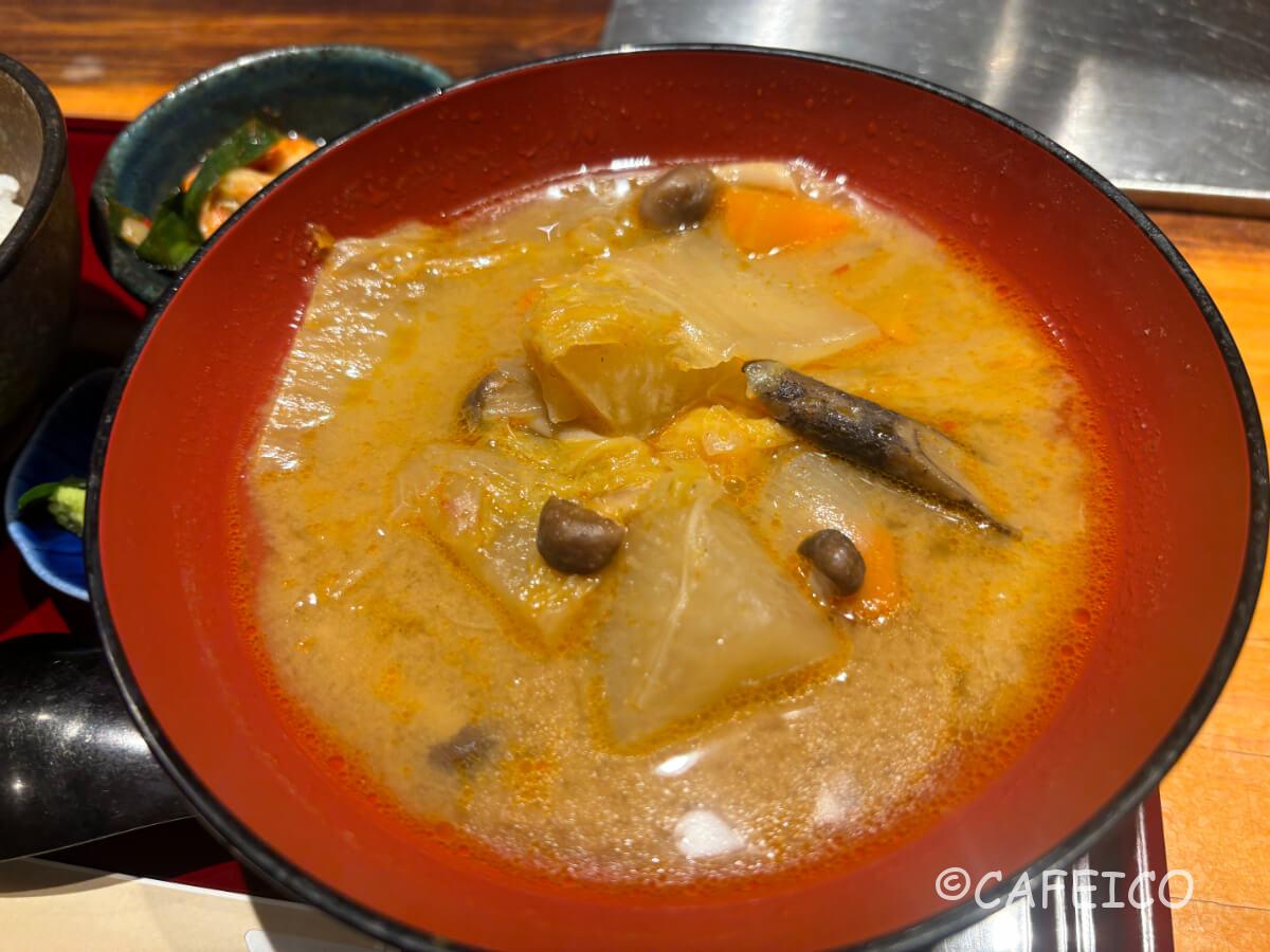 自家製キムチ、小もりご飯、今月のスープの前菜が付いています。