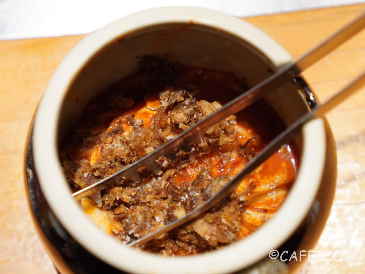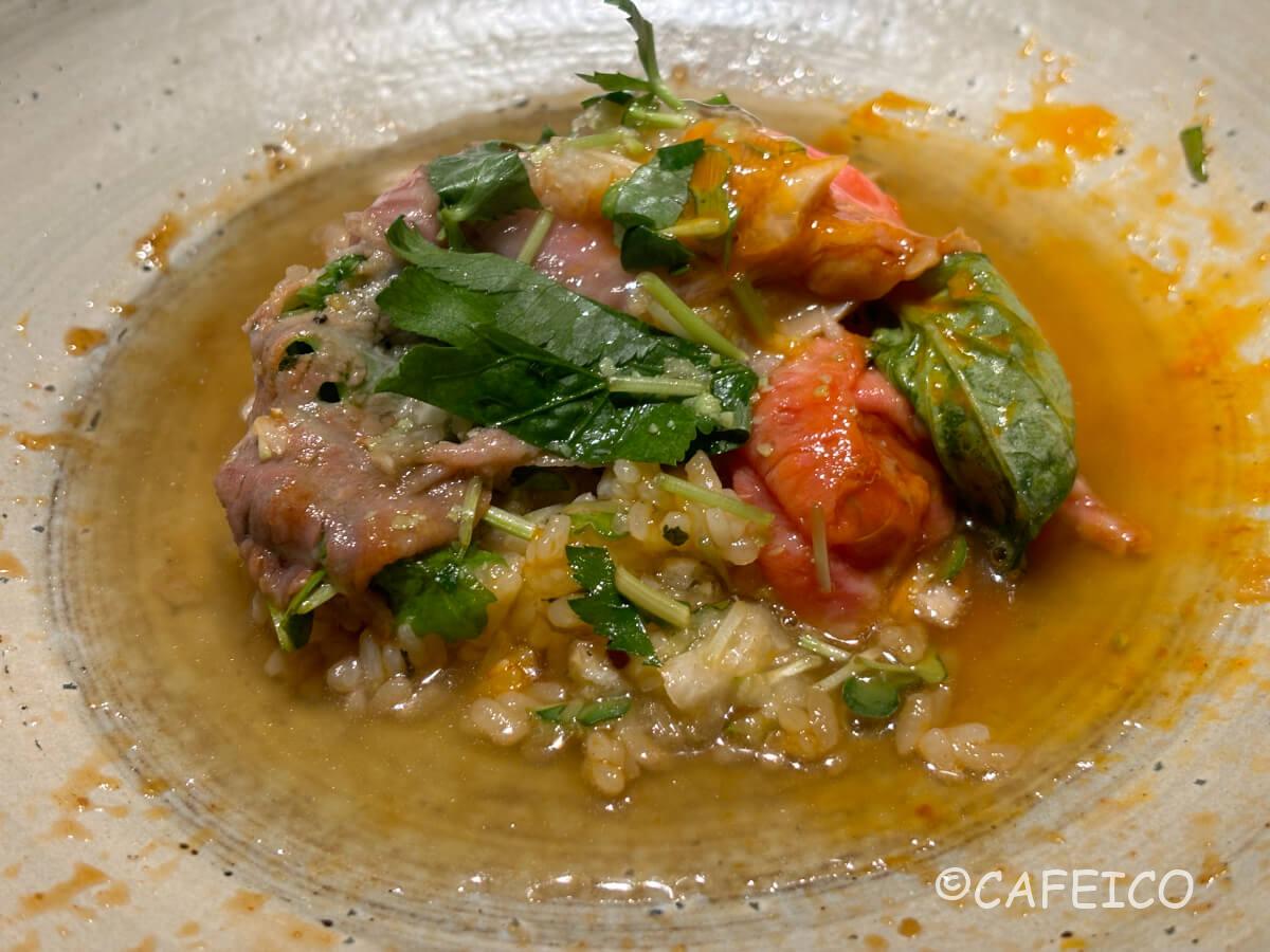 お肉とごはんにかけて出汁茶漬けの出来上がり!