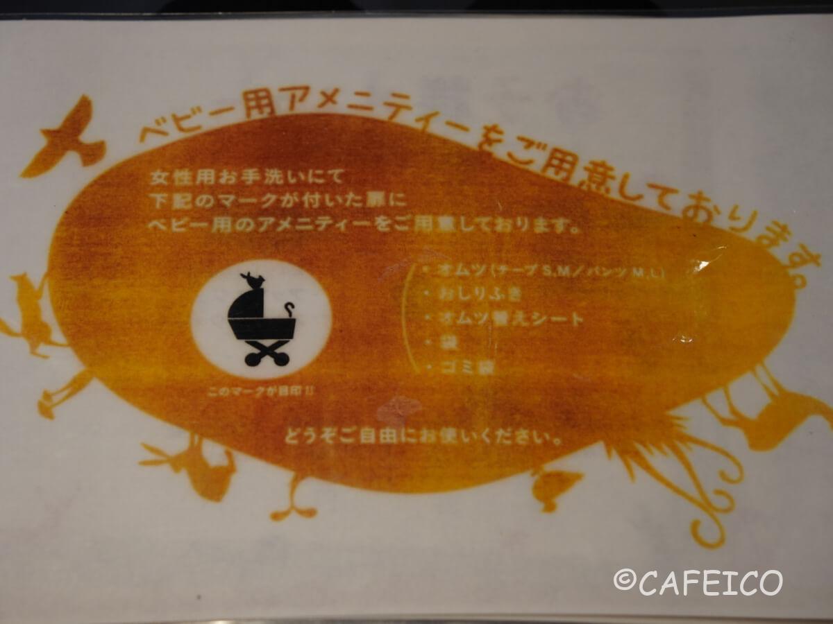 オムツ、おしりふき、オムツ替えシート、袋、ゴミ袋が自由に使えるので安心して食事を楽しめます。