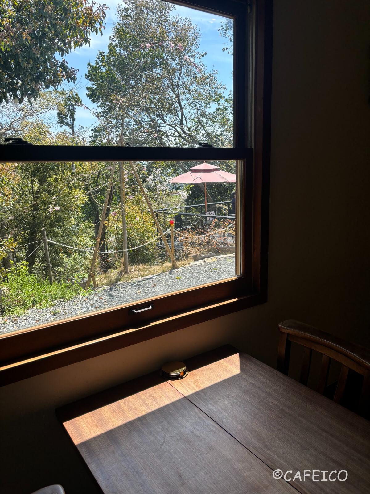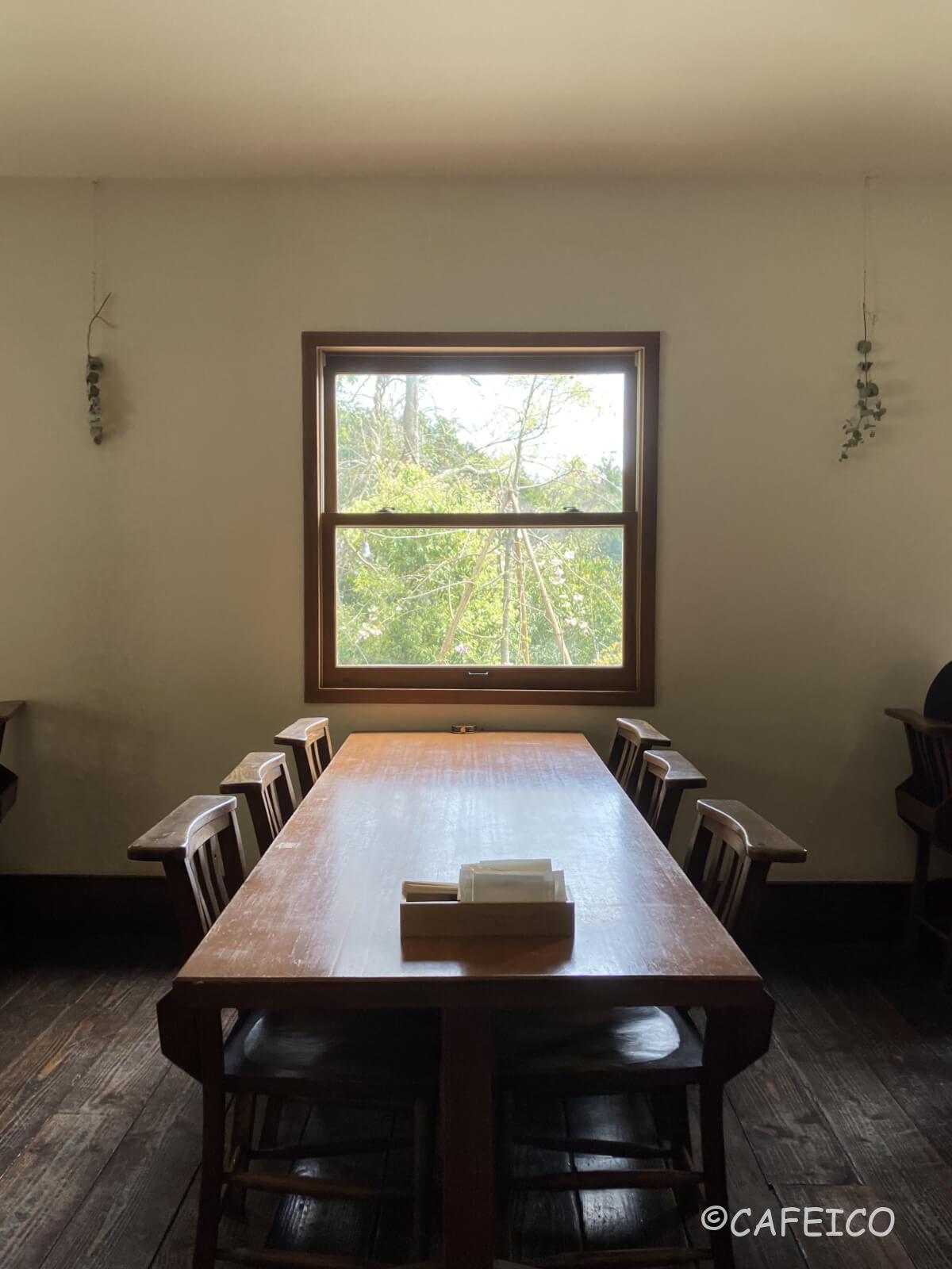 1つの窓に1テーブル。四季折々の自然を楽しめる居心地のよい空間