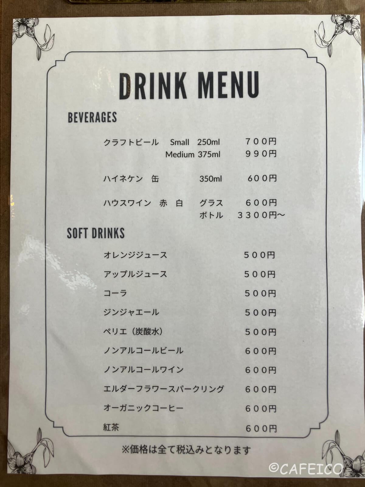こちらはドリンクメニュー。