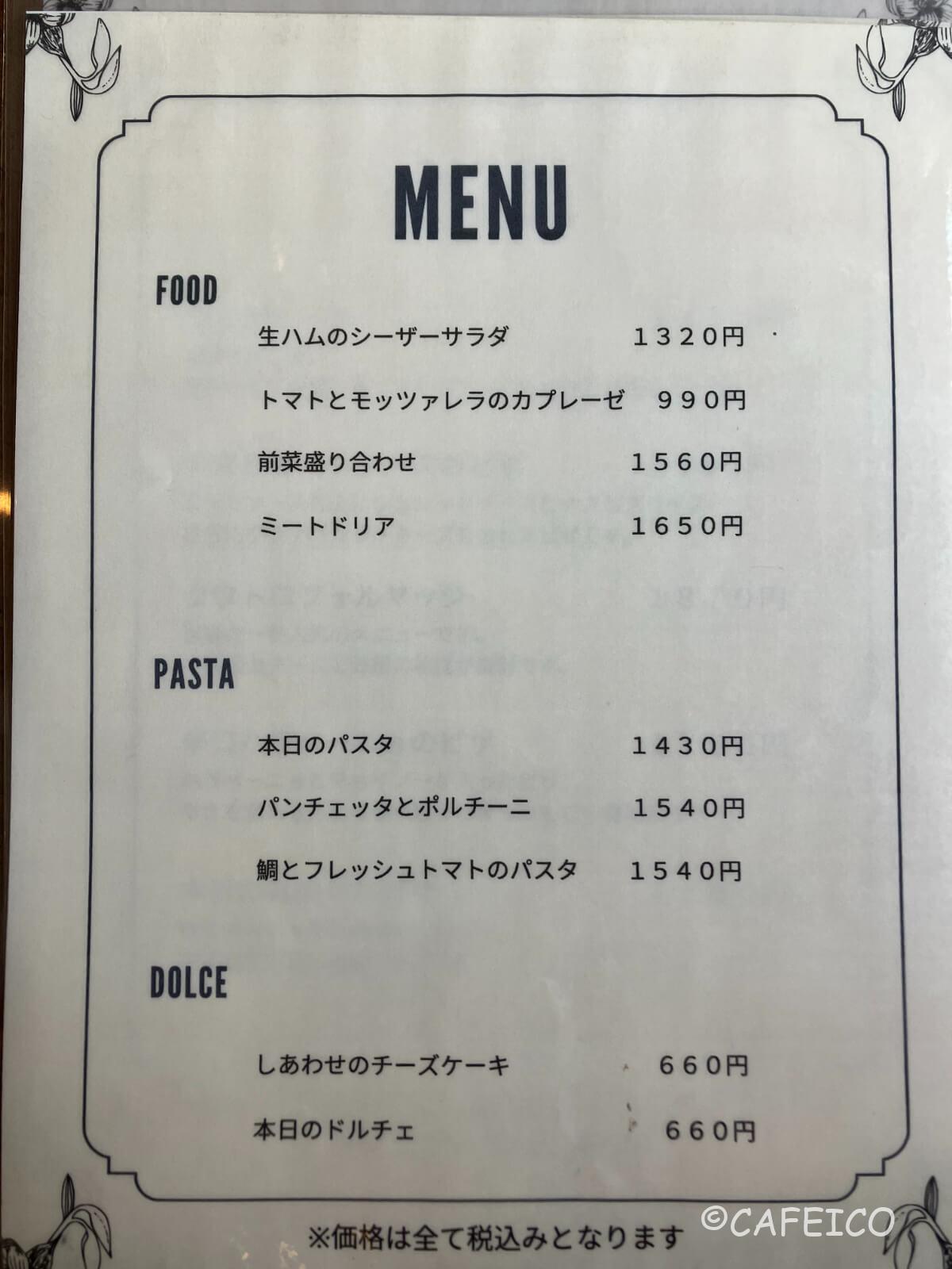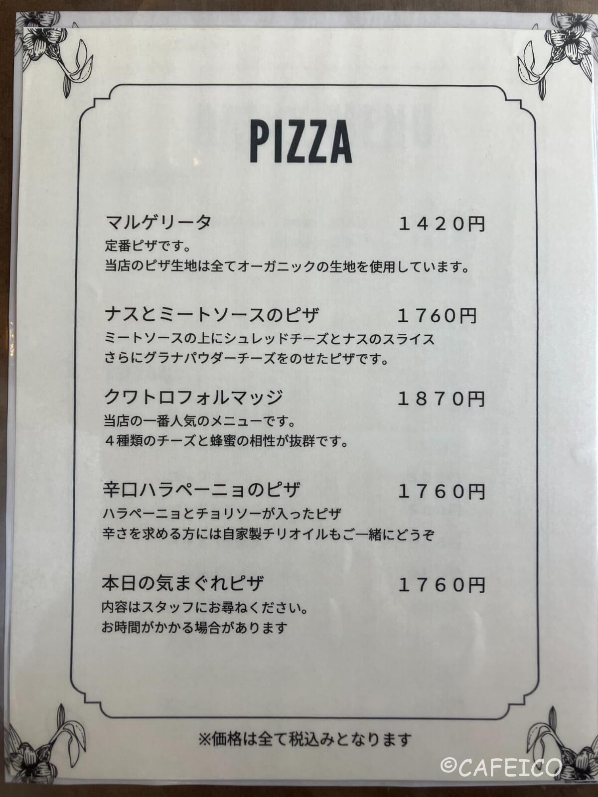ピザやパスタが中心のイタリアンメニュー。