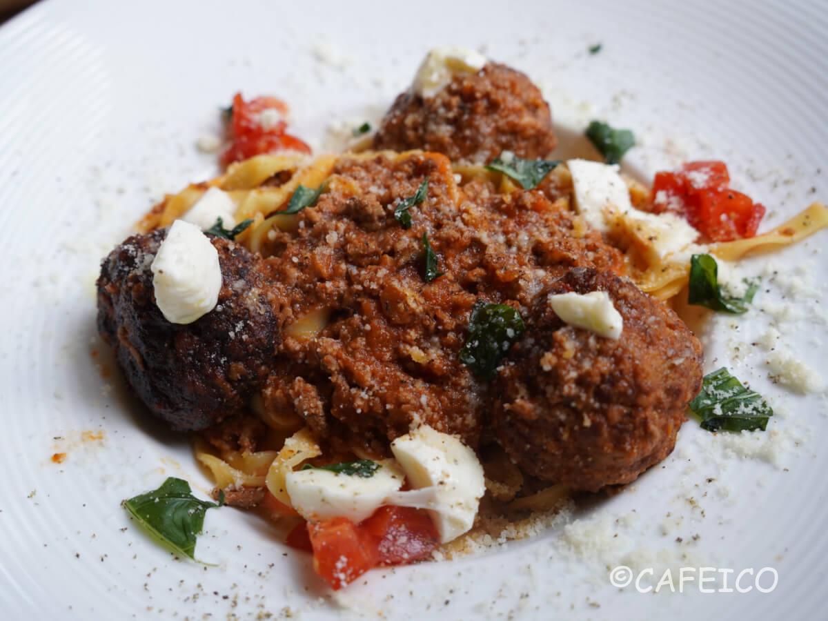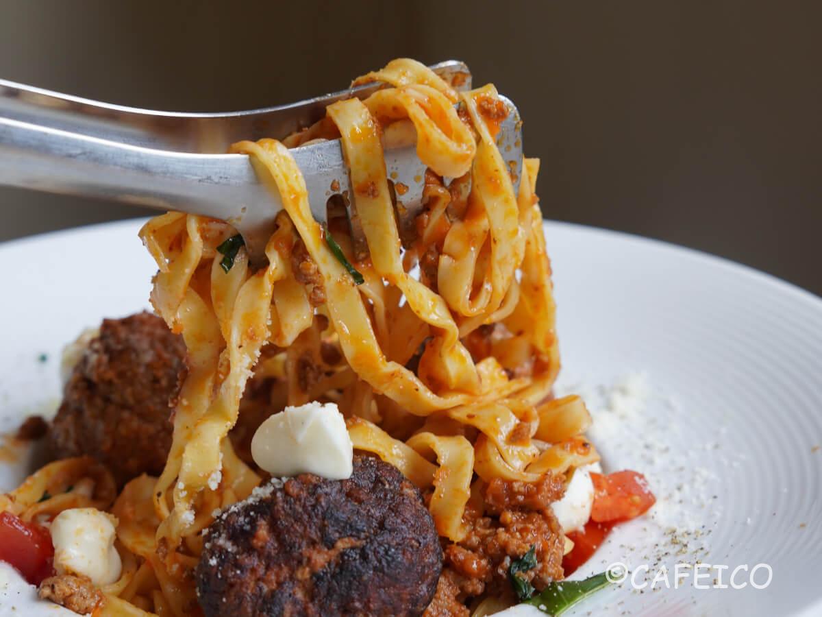 赤身肉ミンチの食感がグッと味わえるパスタ。