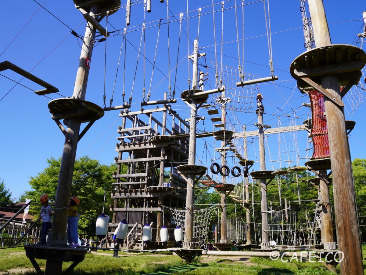 こんなアスレチックも、広大な芝生もあって子連れでいっぱい遊べちゃいます♪