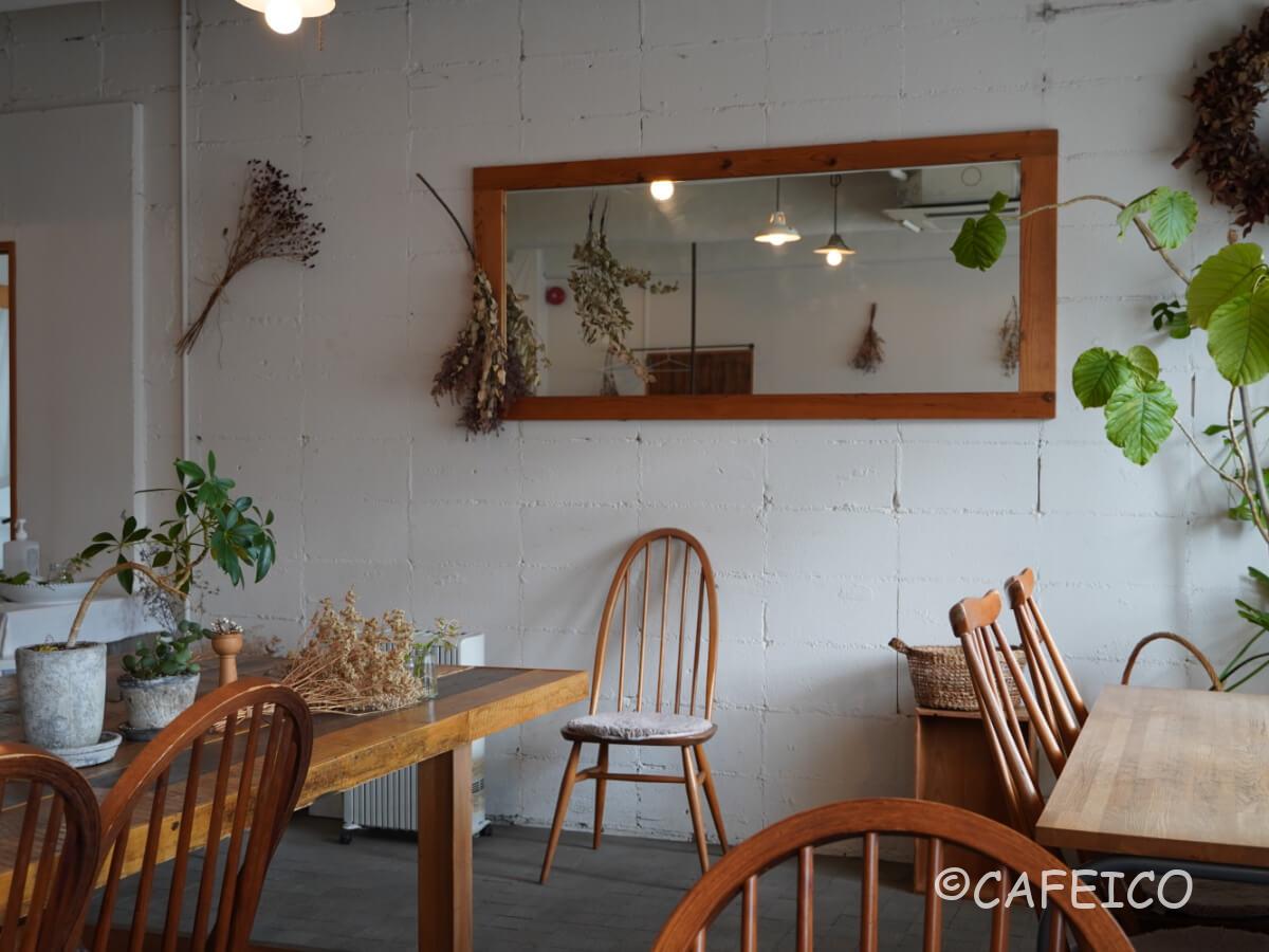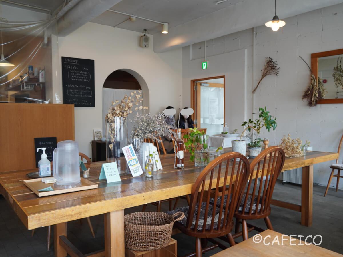 真ん中には大きなテーブル。植物などの装飾もきれいです。