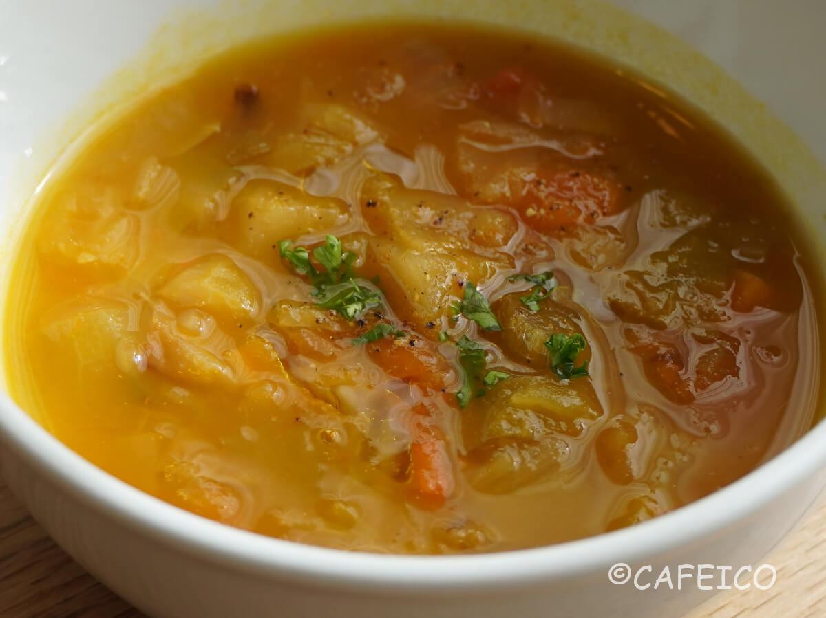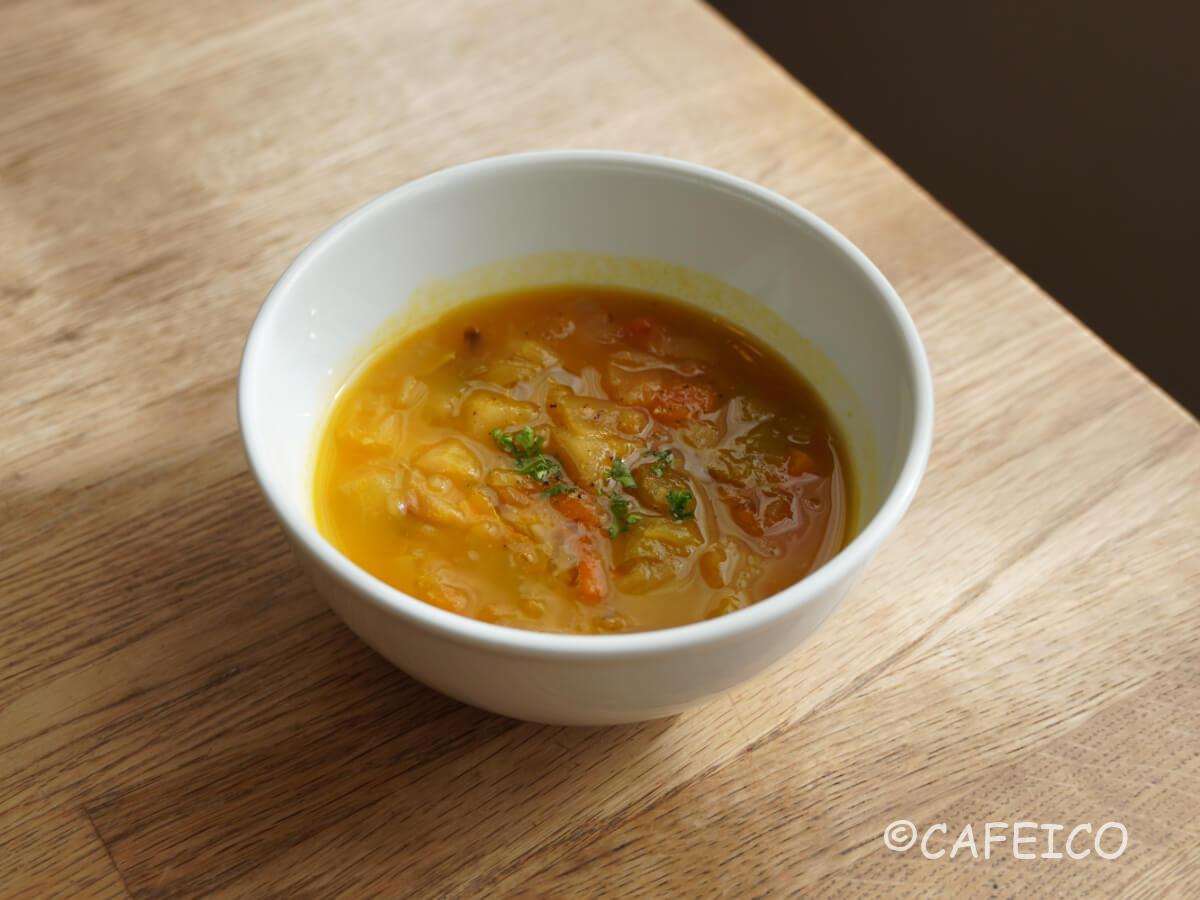 塩とオリーブオイルだけで時間をかけて作られたお野菜のスープ。おいしいです。