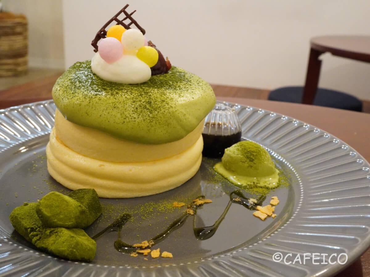 こちらはレギュラーメニューの抹茶パンケーキ!
