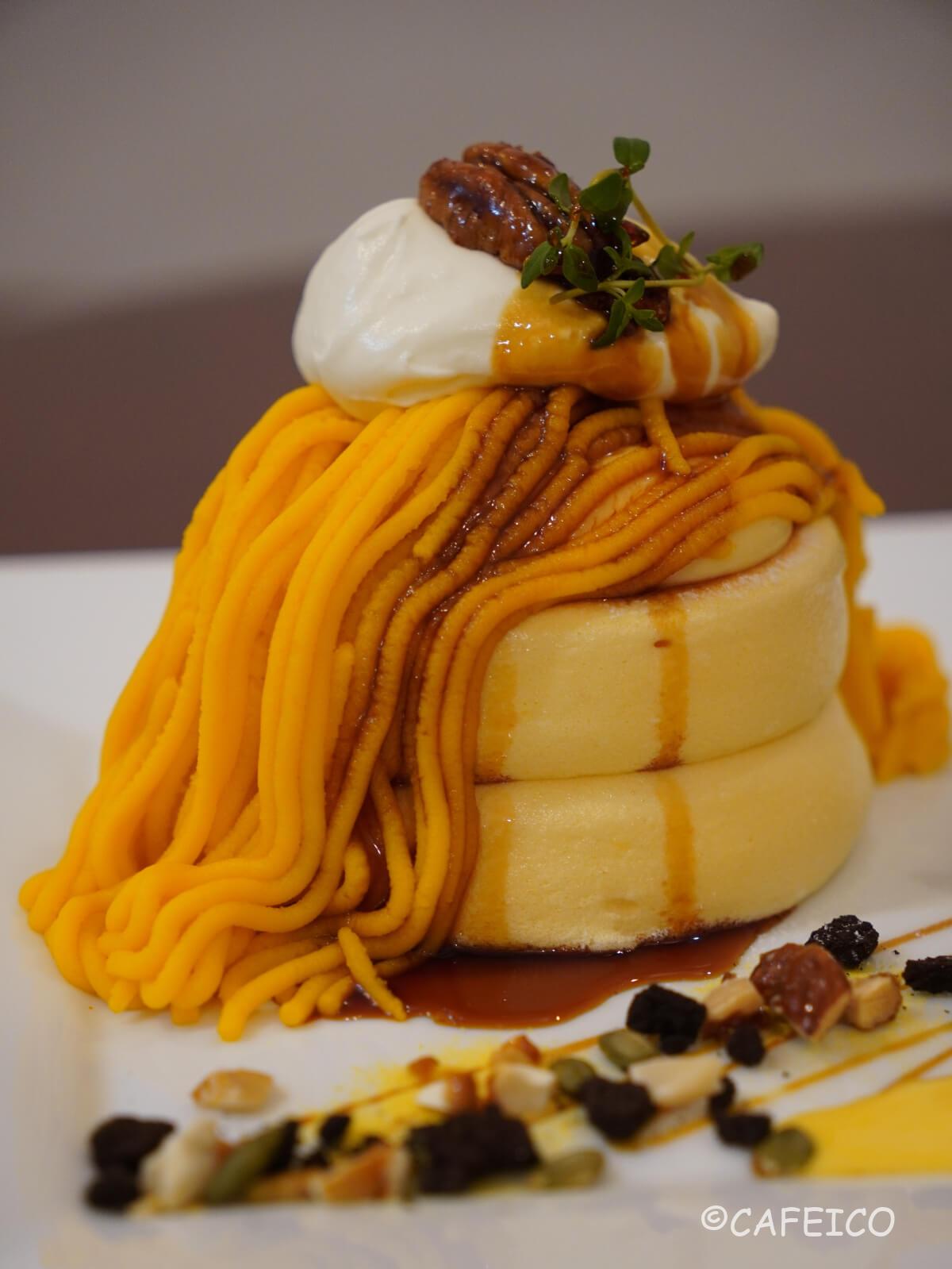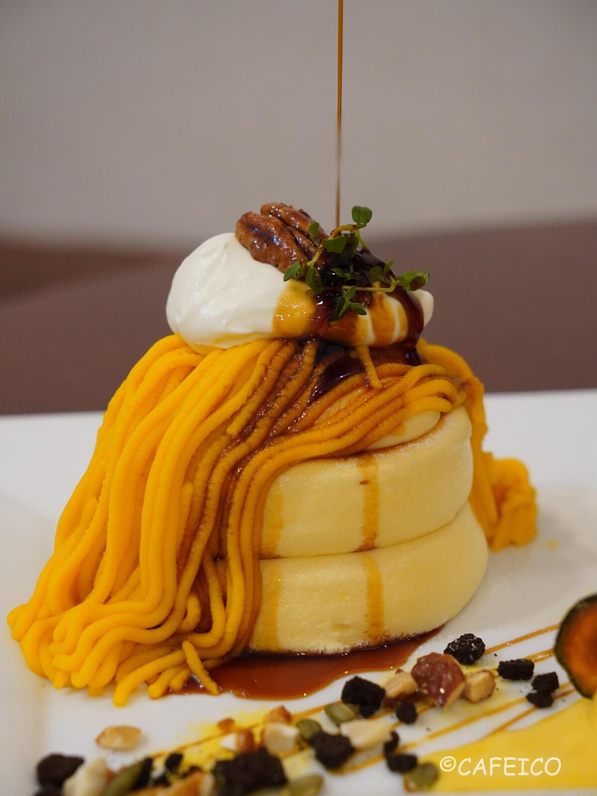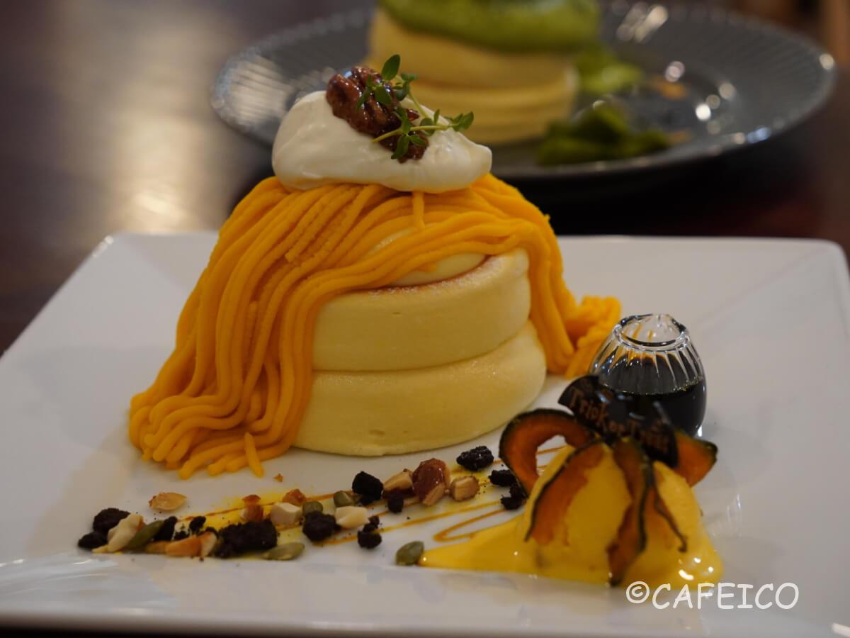 今回の限定メニューは、かぼちゃモンブランのパンケーキ!