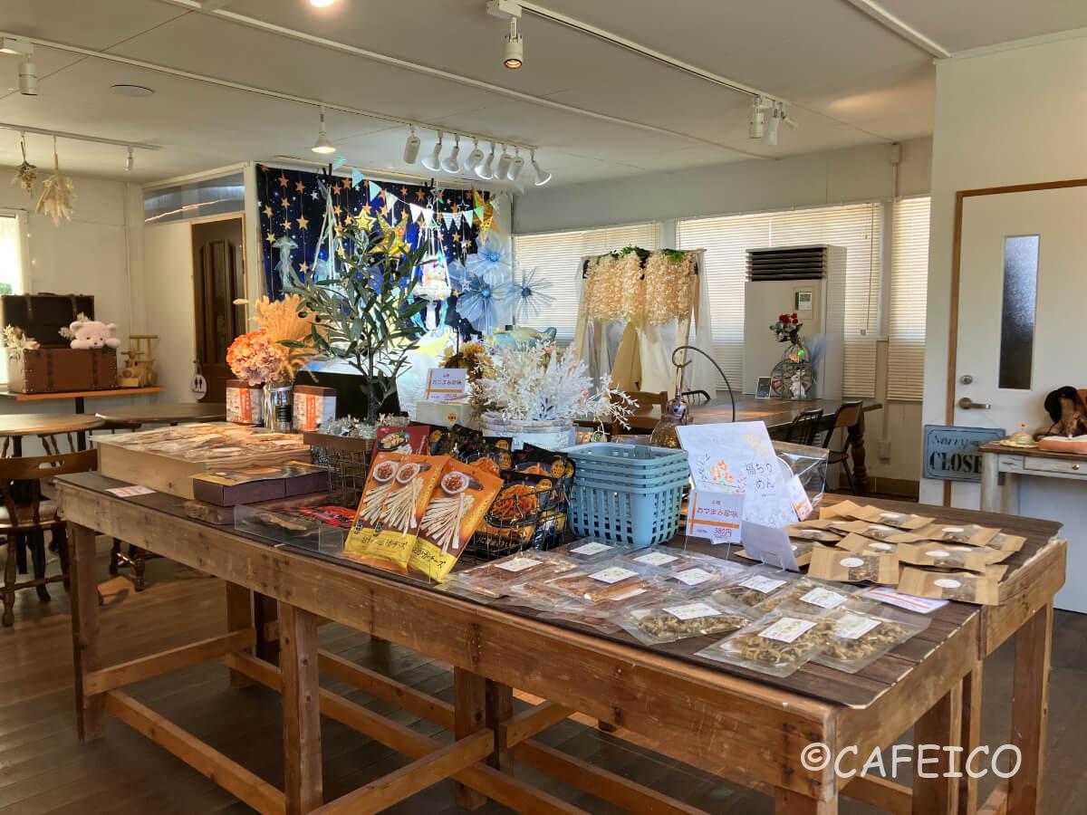 お店に入るとカラスミを始めとしたおつまみやわんちゃんのグッズなどの販売コーナーが!
