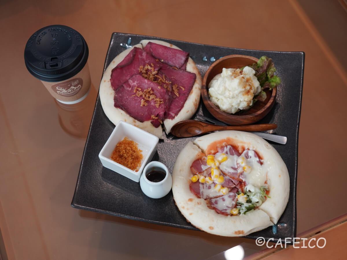 注文したのは「2種のオリジナルピザ ランチセット(税込1,598円)」です。ランチセットにするとサラダどドリンクが付いてきます♪