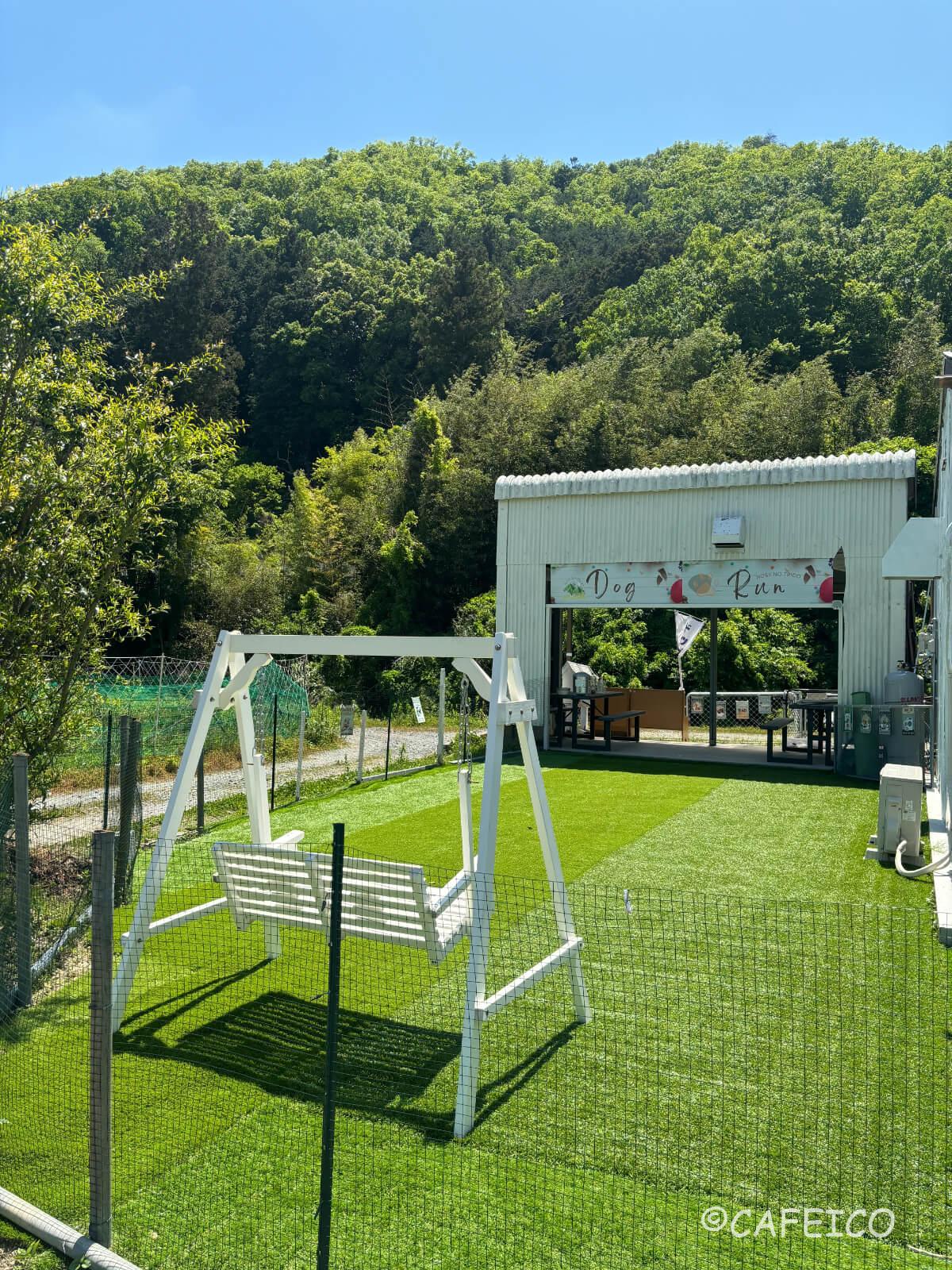 こちらはドッグラン!ブランコもあって芝生だし、奥にはテーブルとソファもありましたよ♪
