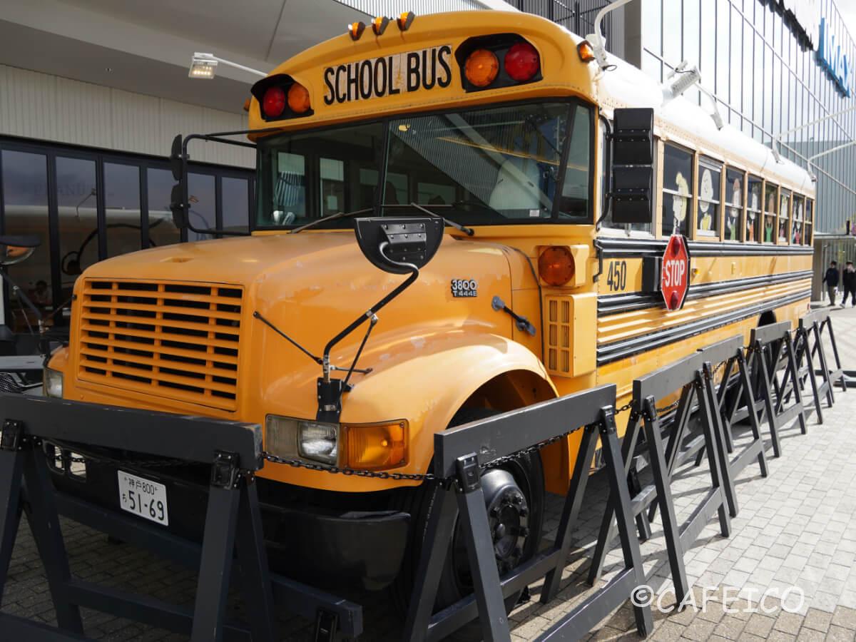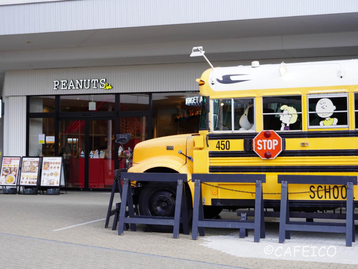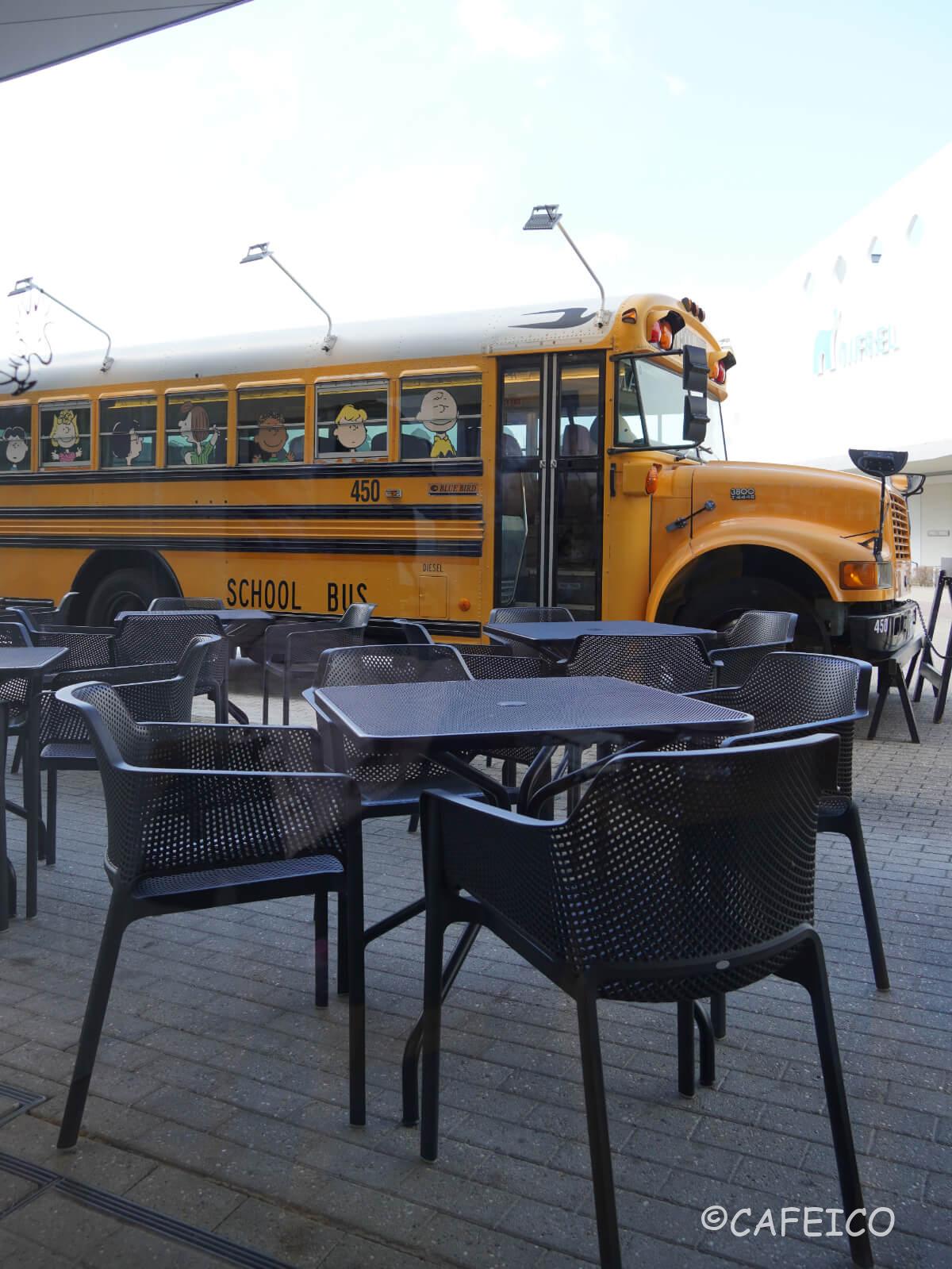 ピーナッツカフェ大阪店のシンボルが、このスクールバス!