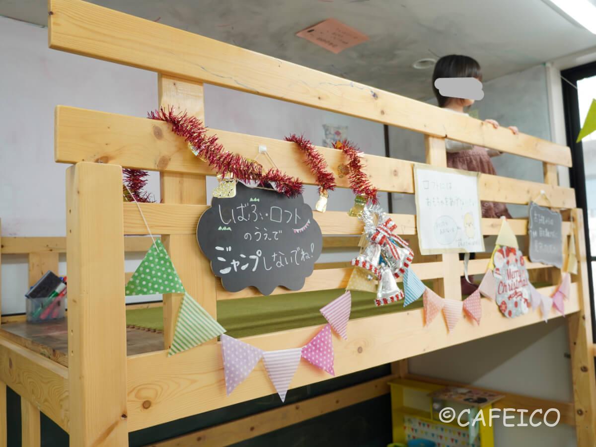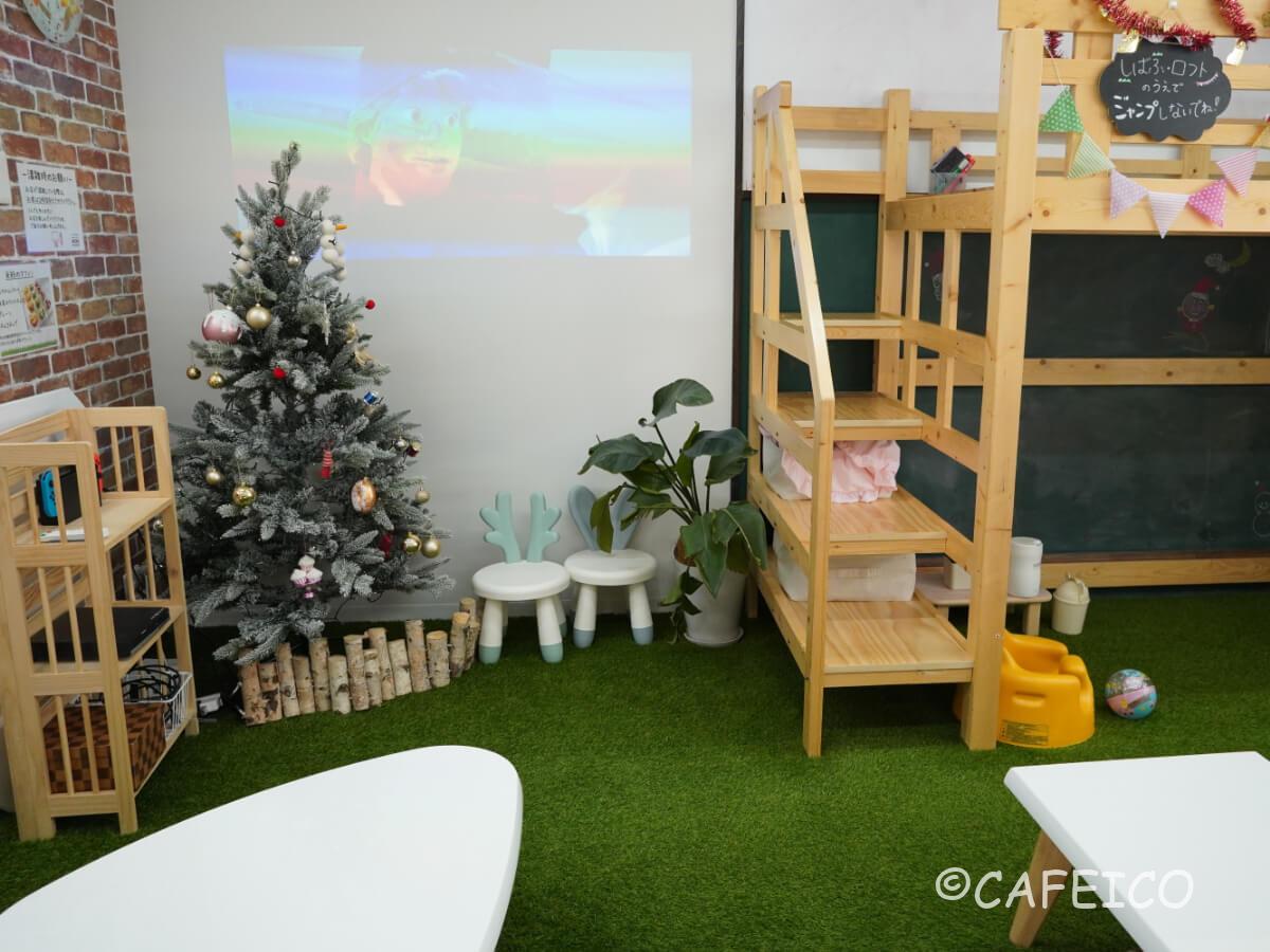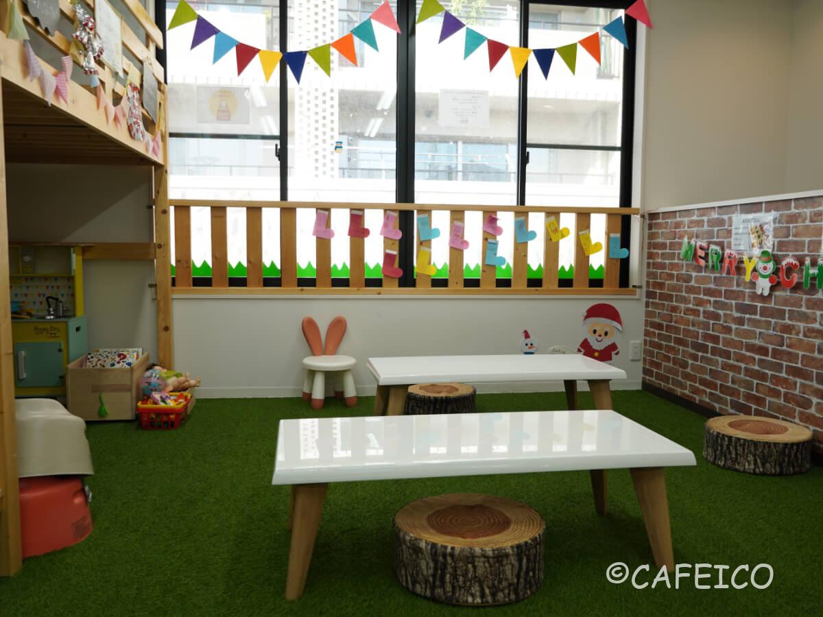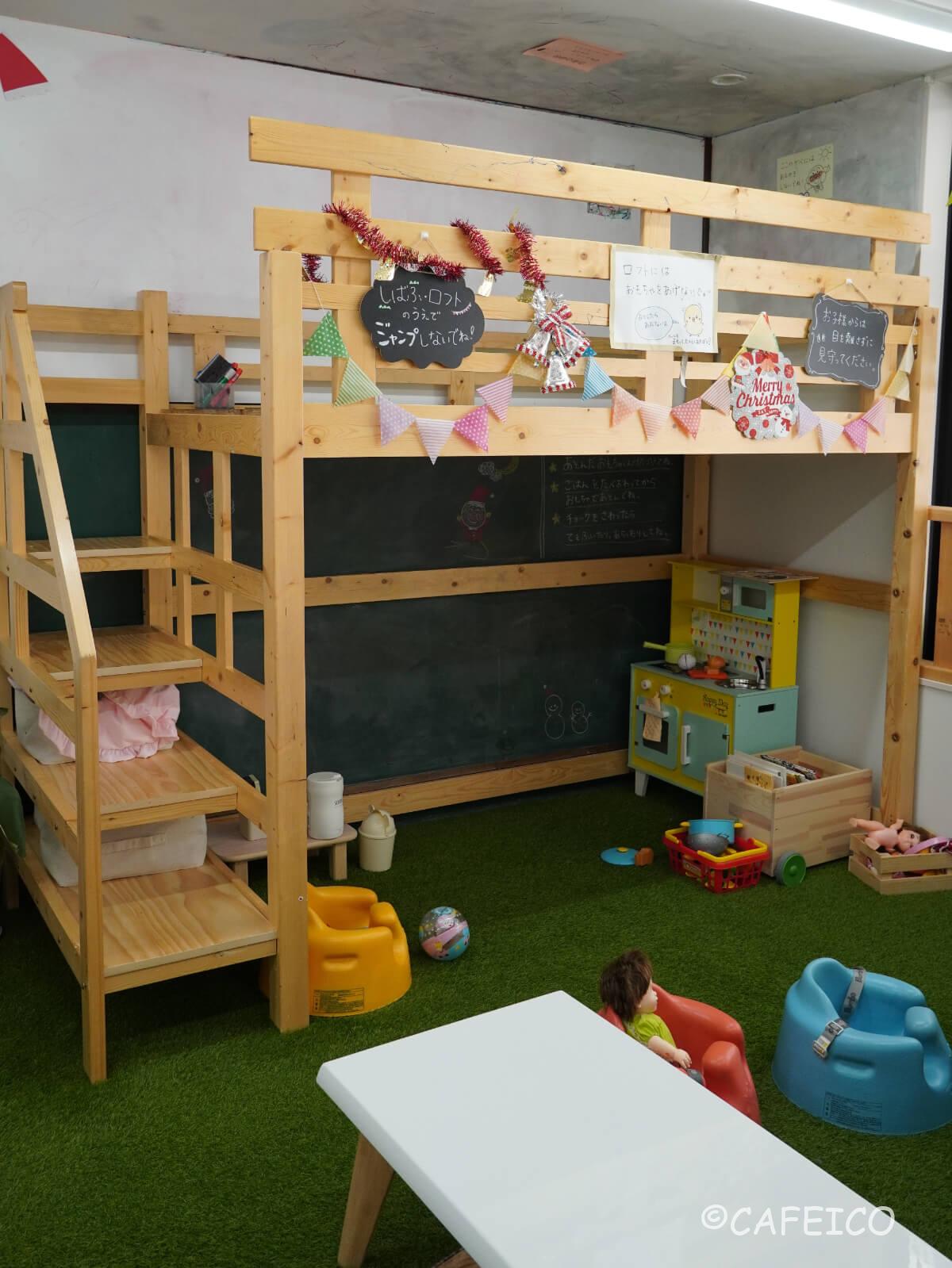 全体がキッズスペースのような可愛い空間で、お店には子供が楽しく遊べる工夫や、お母さんが快適に過ごすための設備が盛りだくさん!