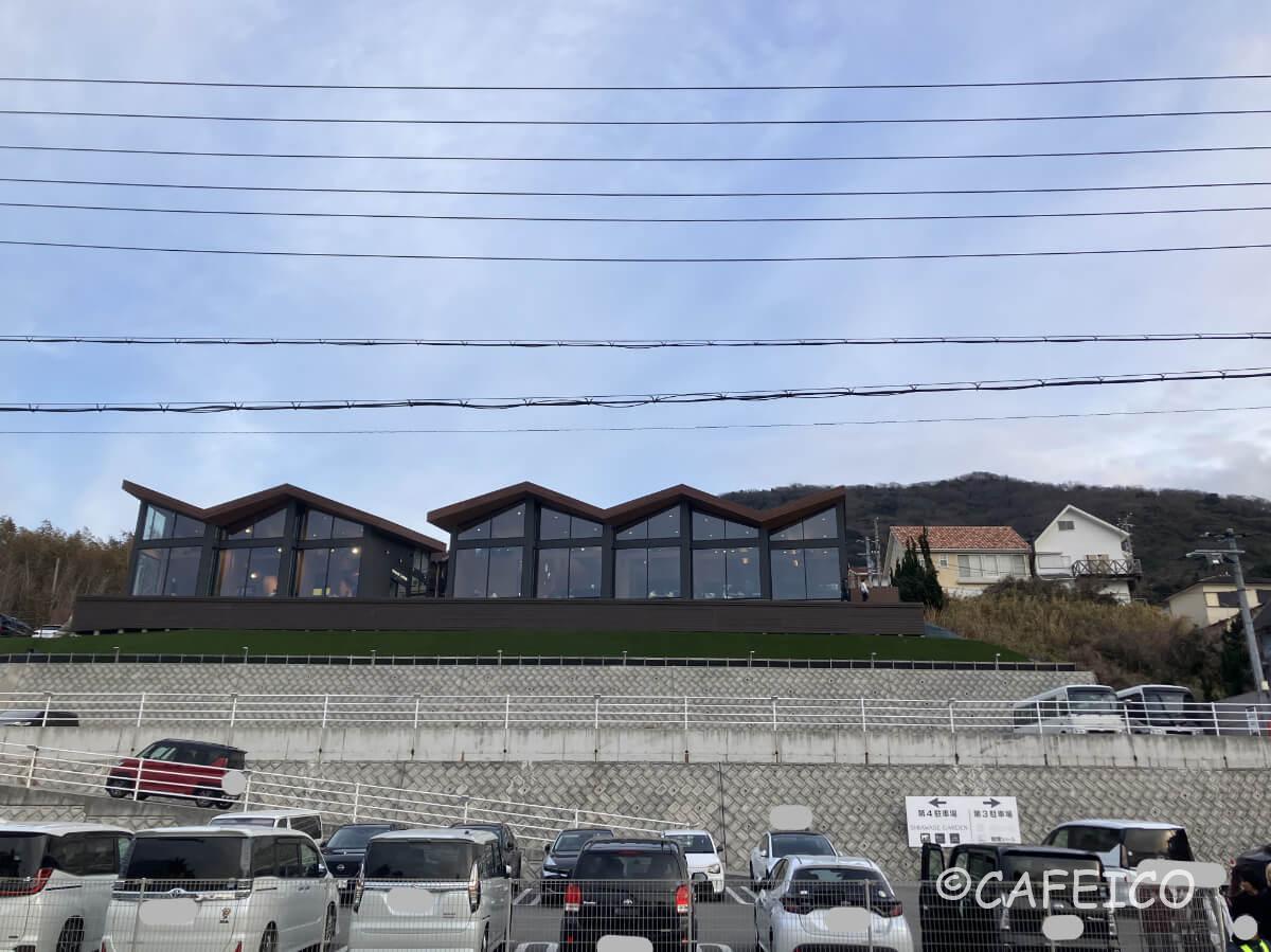 駐車場の上には、新しくできたワンちゃん連れの施設もありました。パンケーキをワンちゃんと食べることができますよ。