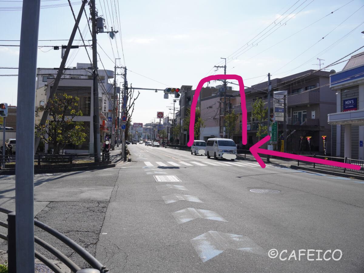 お店はこの駐車場から十字路を渡ってすぐのところにあります。