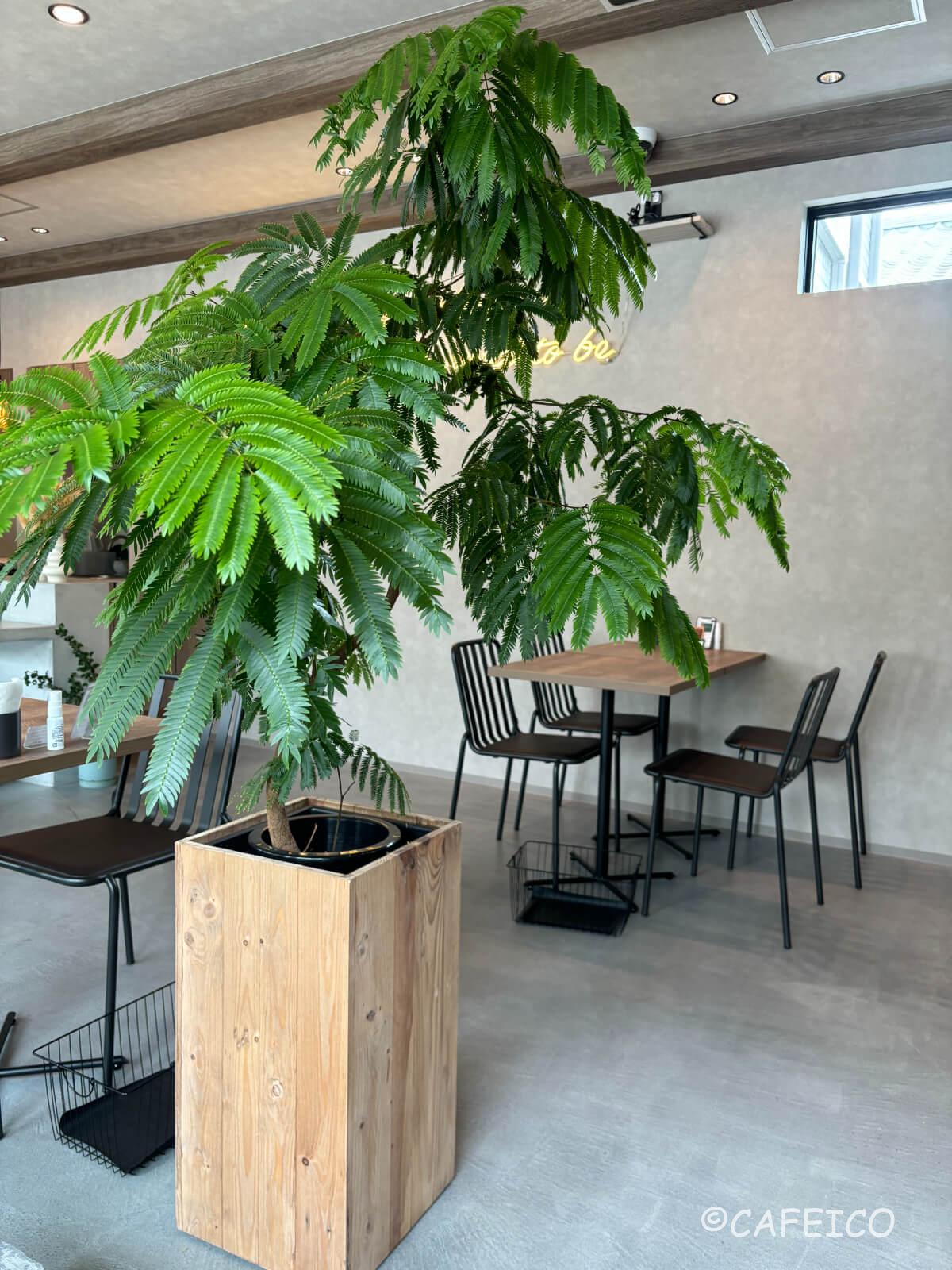 観葉植物は見た目もいいけど、お客さん同士の視線が合わなくなるので居心地もよくなりますね。