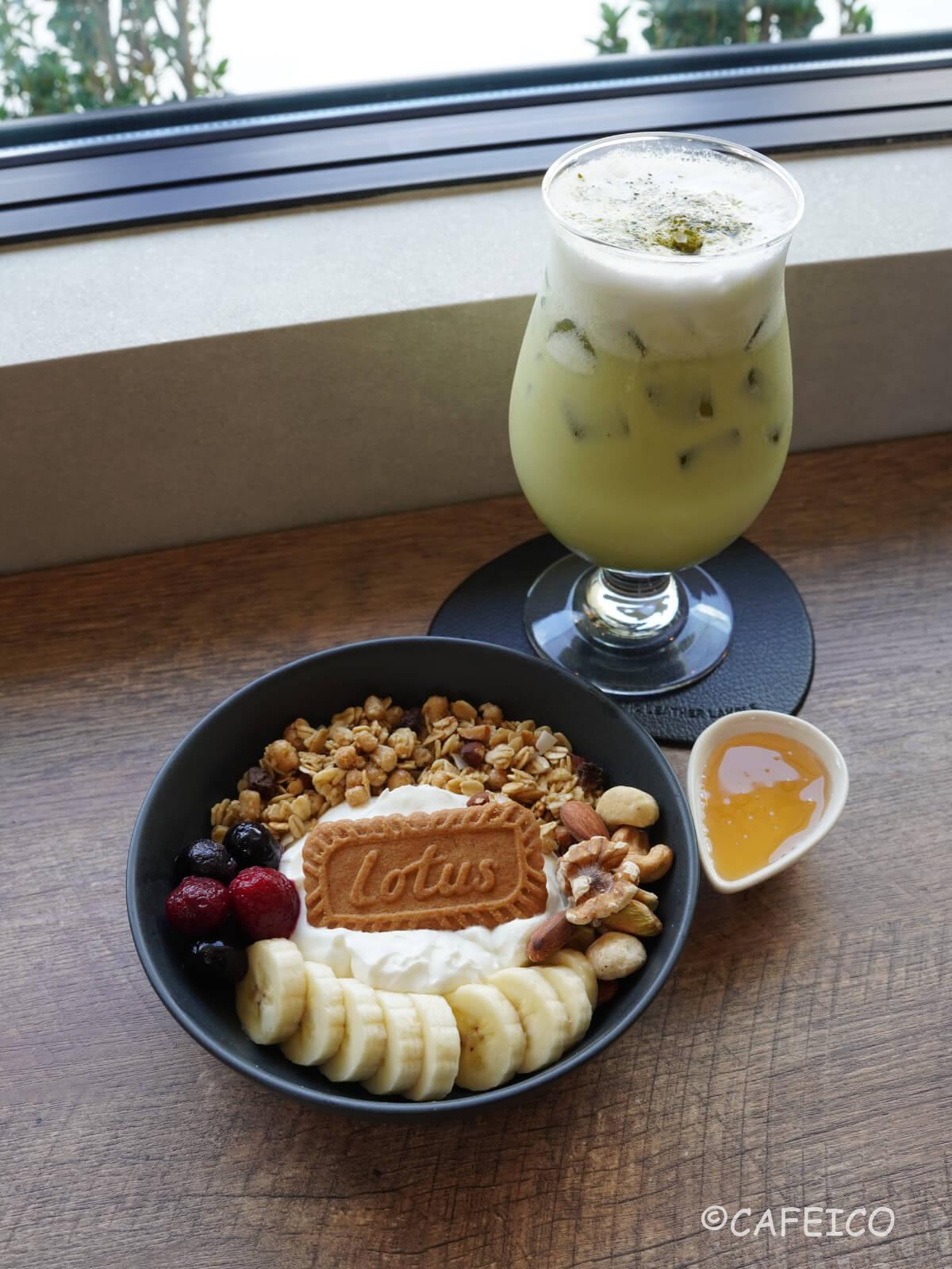 今回は「グリークヨーグルトボウル」と「アイス抹茶ラテ」をいただきました♪
