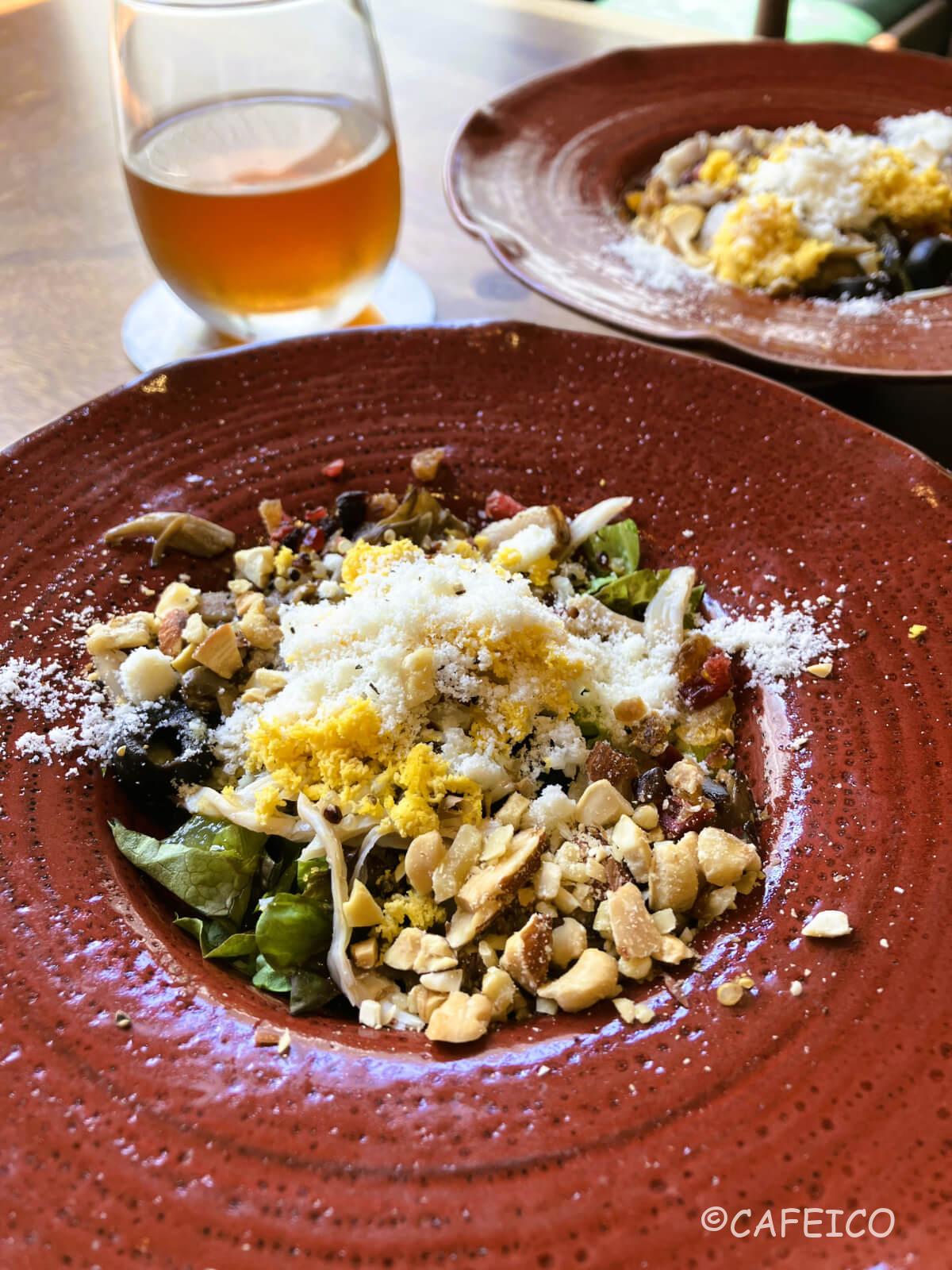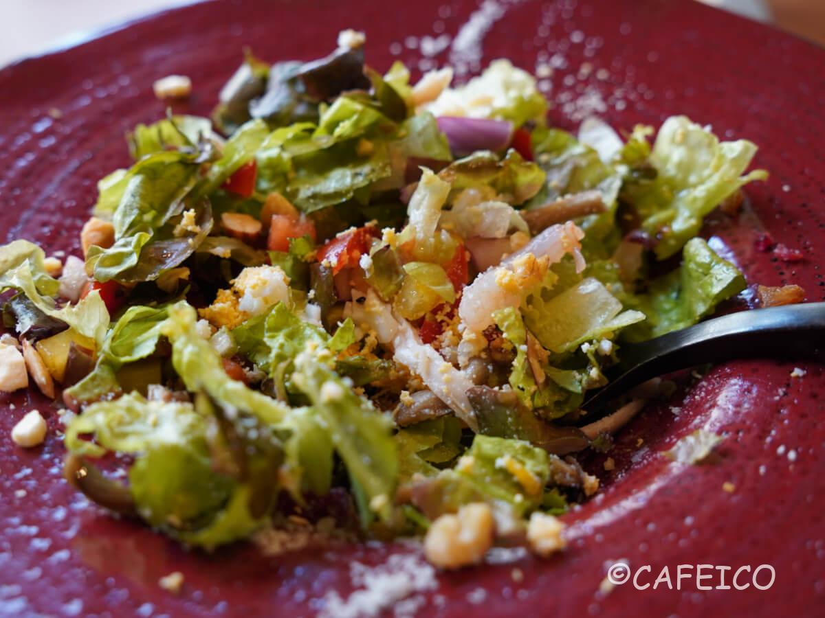 オリーブオイルとバルサミコ酢でシンプルに味付けされた、30品目のサラダ。