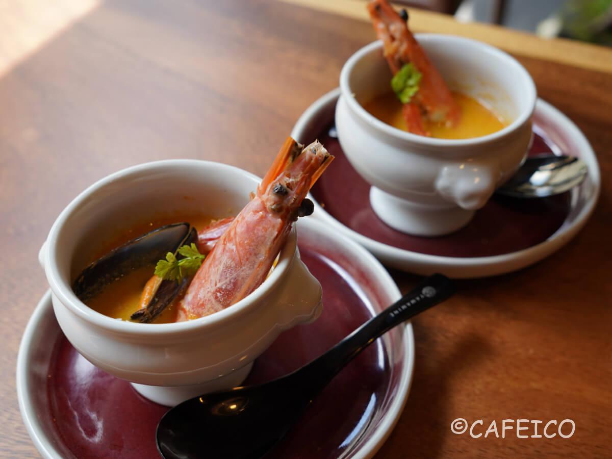 濃厚な魚介のスープと海鮮が入った贅沢なスープです。