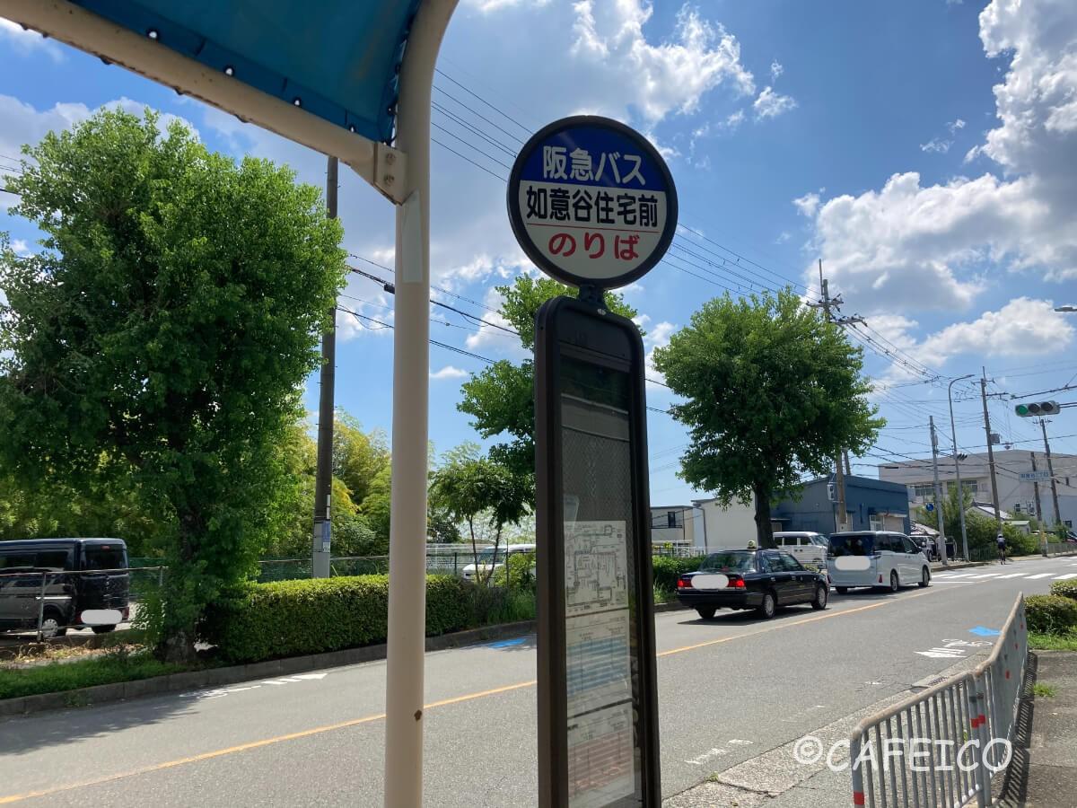 バスを利用するなら、阪急バス 「如意谷住宅前」下車が近いです。